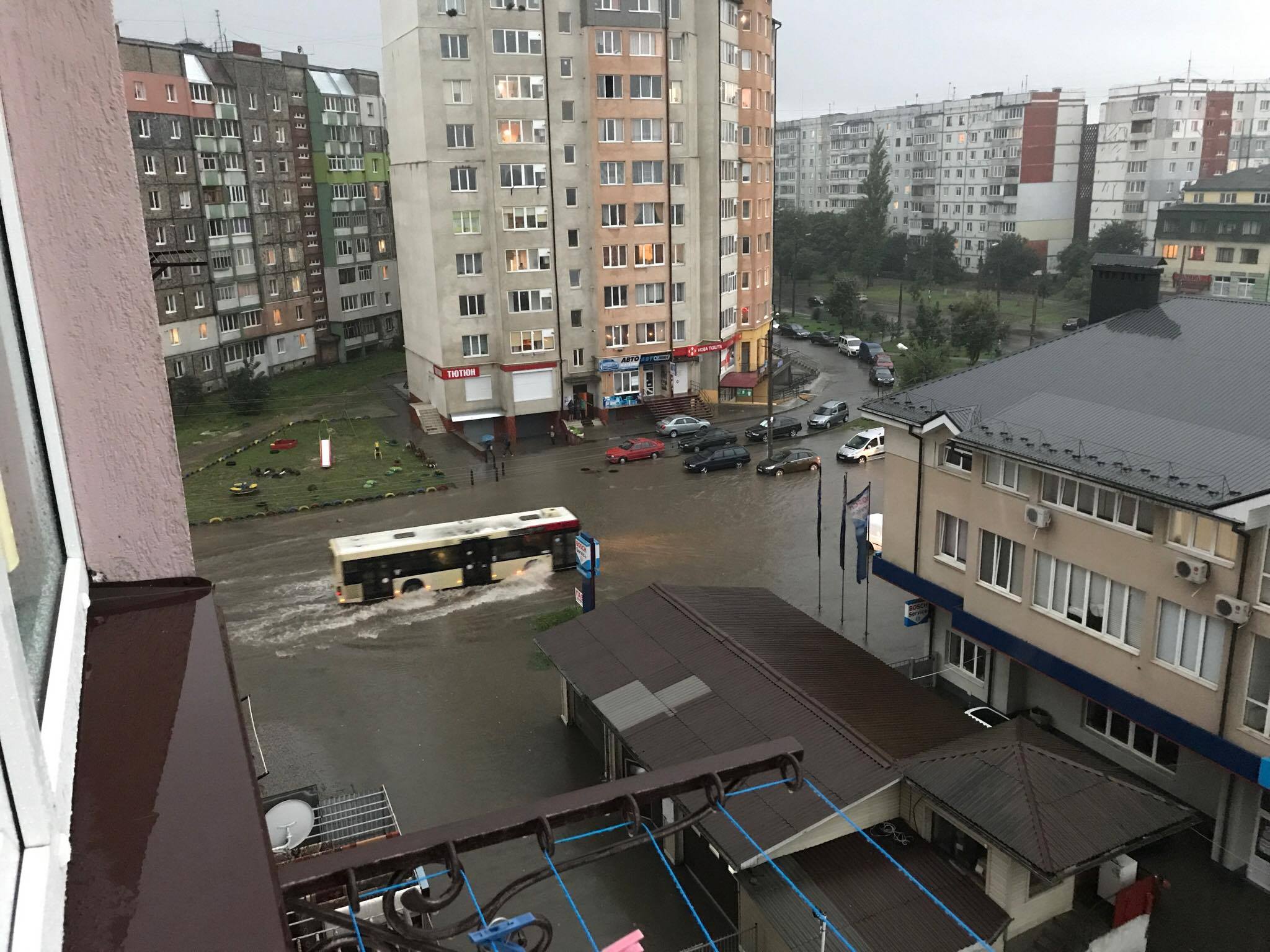 Затоплені вулиці Січових Стрільців, Чорновола, Шевченка, Коновальця, Грюнвальдська, Симоненка, Івасюка, Вовчинецька.