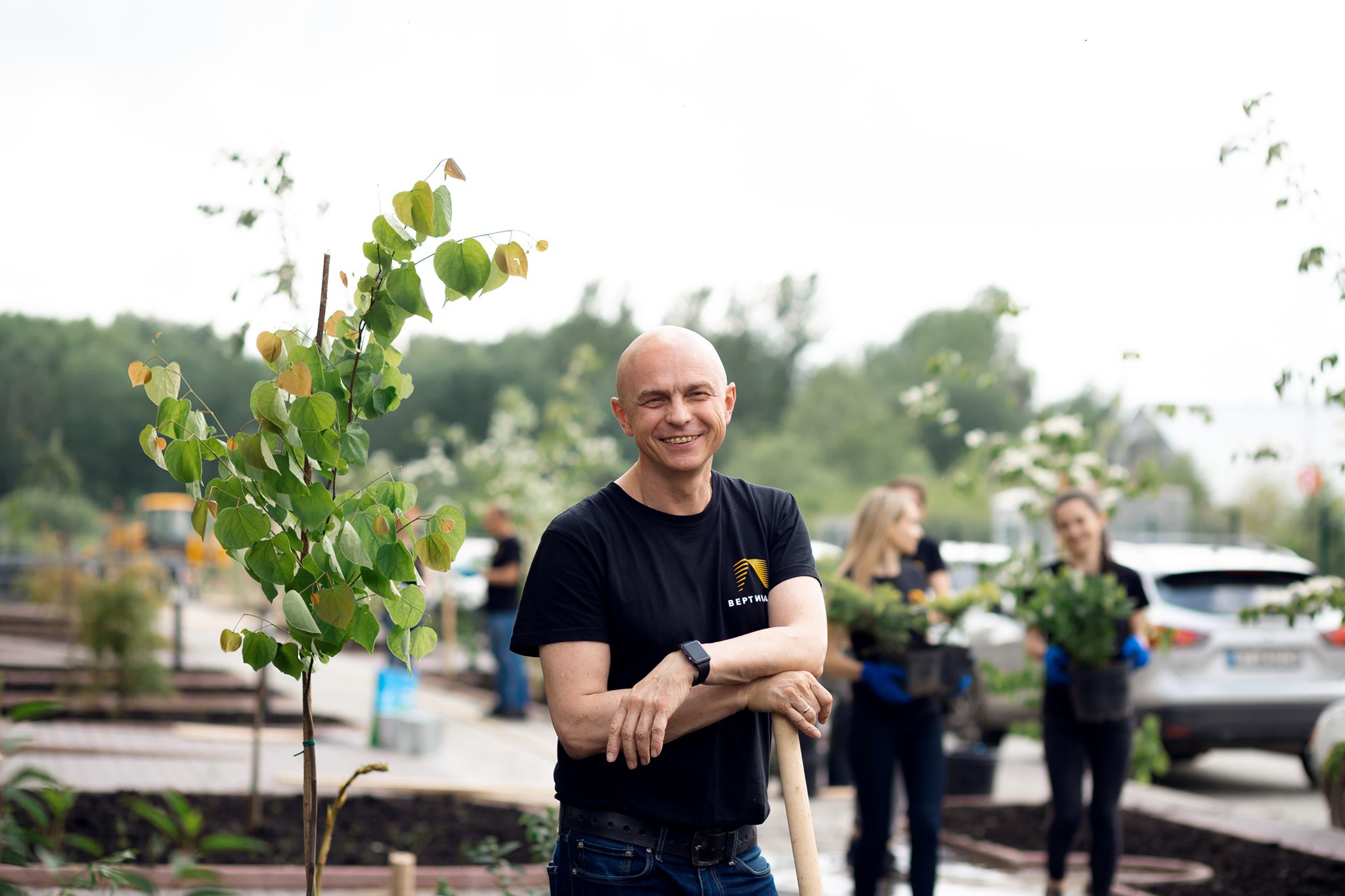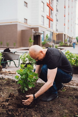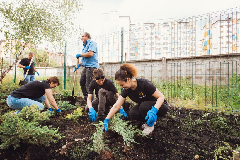 Понад 300 дерев, кущів та декоративних рослин висадили співробітники будівельної компанії Вертикаль разом із засновником компанії Олегом Лєпєніним.