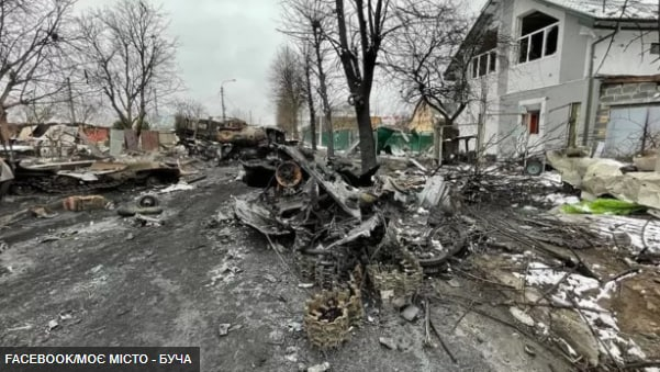 Днем раніше у Бучі російські війська розстріляли автомобіль волонтерів, коли ті везли їжу мешканцям містечка та у притулок для собак.