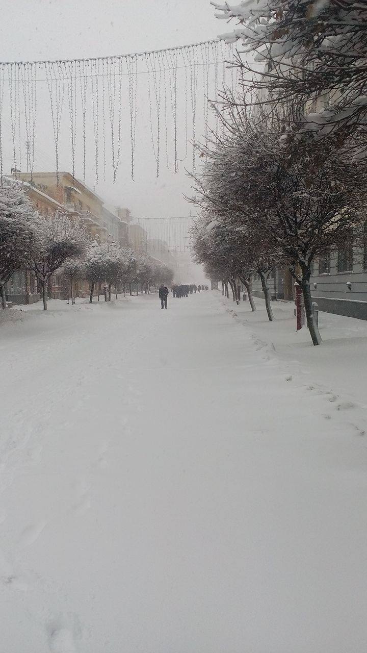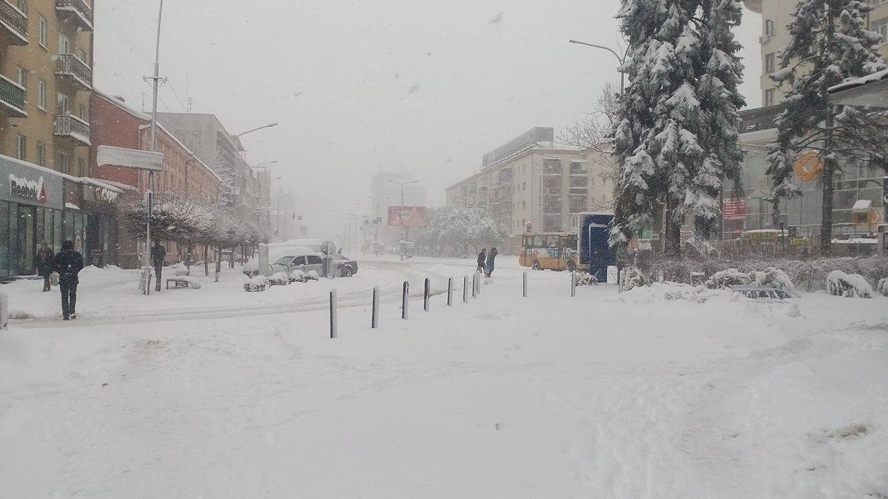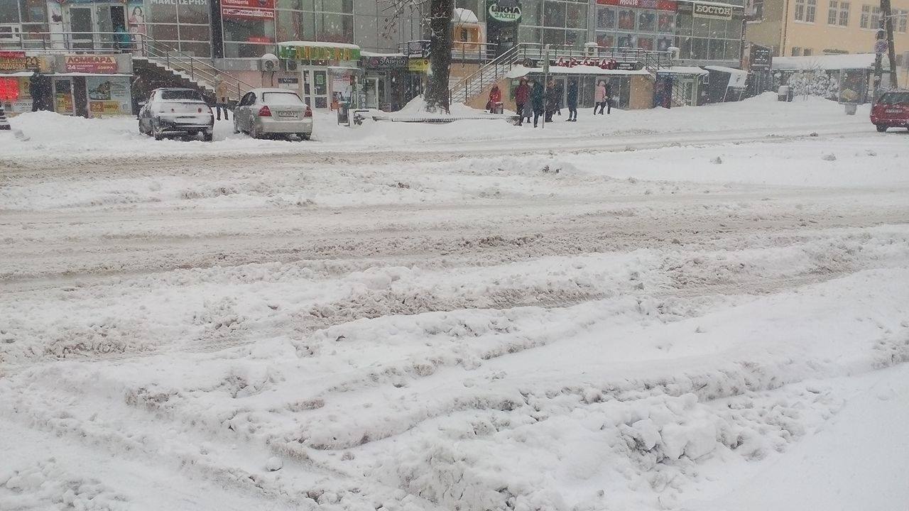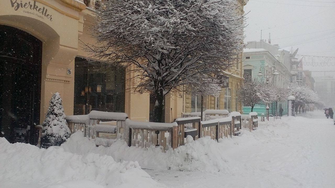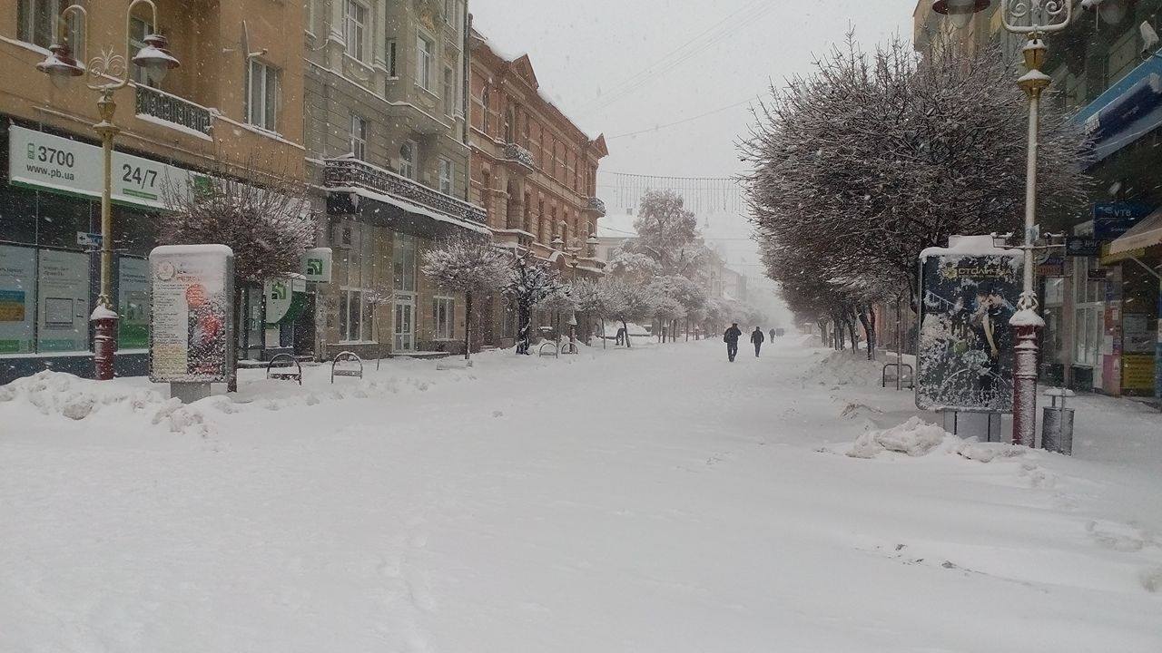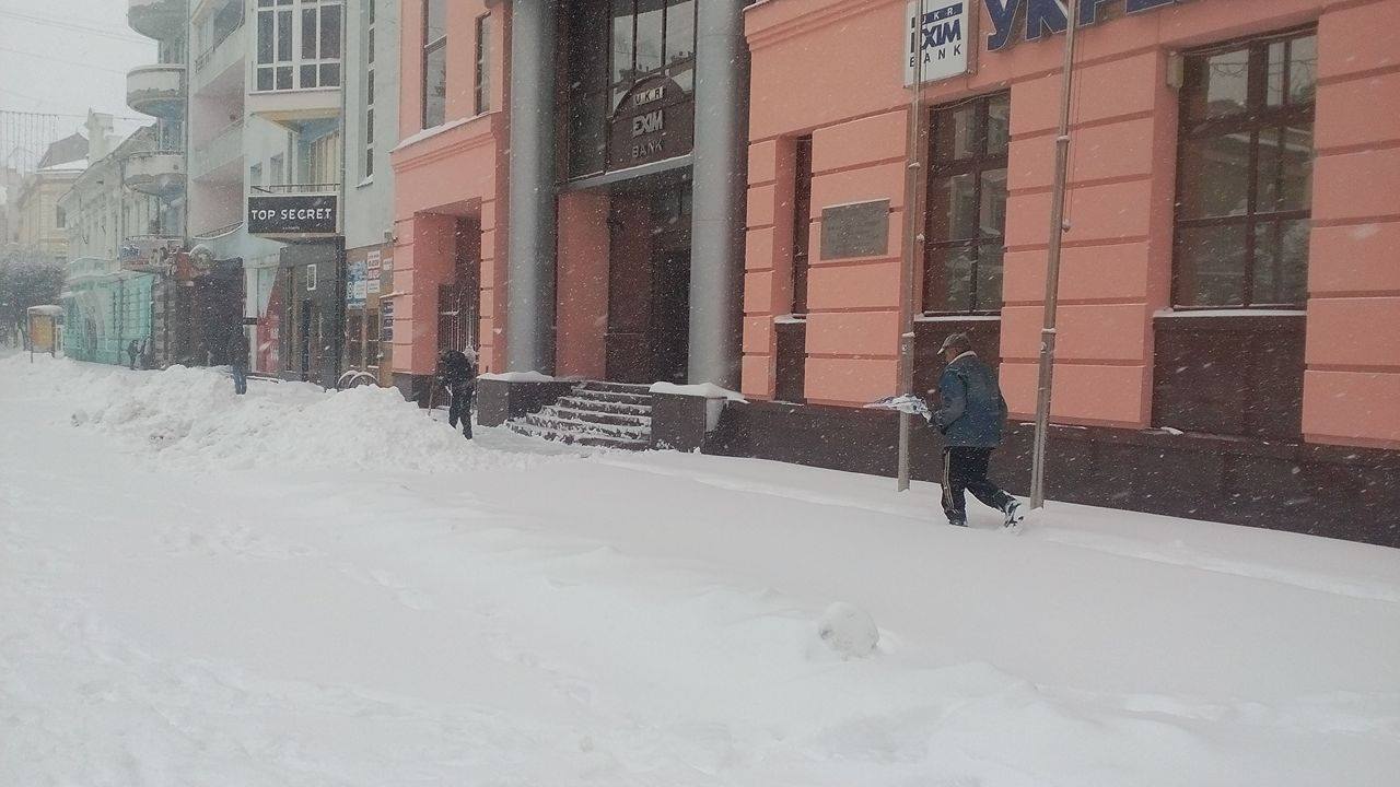 Прогулявшись засніженим середмістям, кореспондент Фіртки помітив лише одну машину, котра розчищає дороги від снігу.