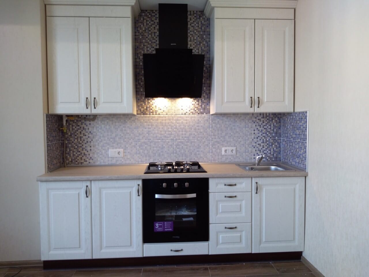 Перші — це гарнітури лінійної конфігурації. Вони встановлюються уздовж однієї стіни приміщення, займають мінімум корисного простору. Прямі гарнітури оптимально підійдуть для невеликих кухонь, вони бувають різної ширини (від 1,2 м).