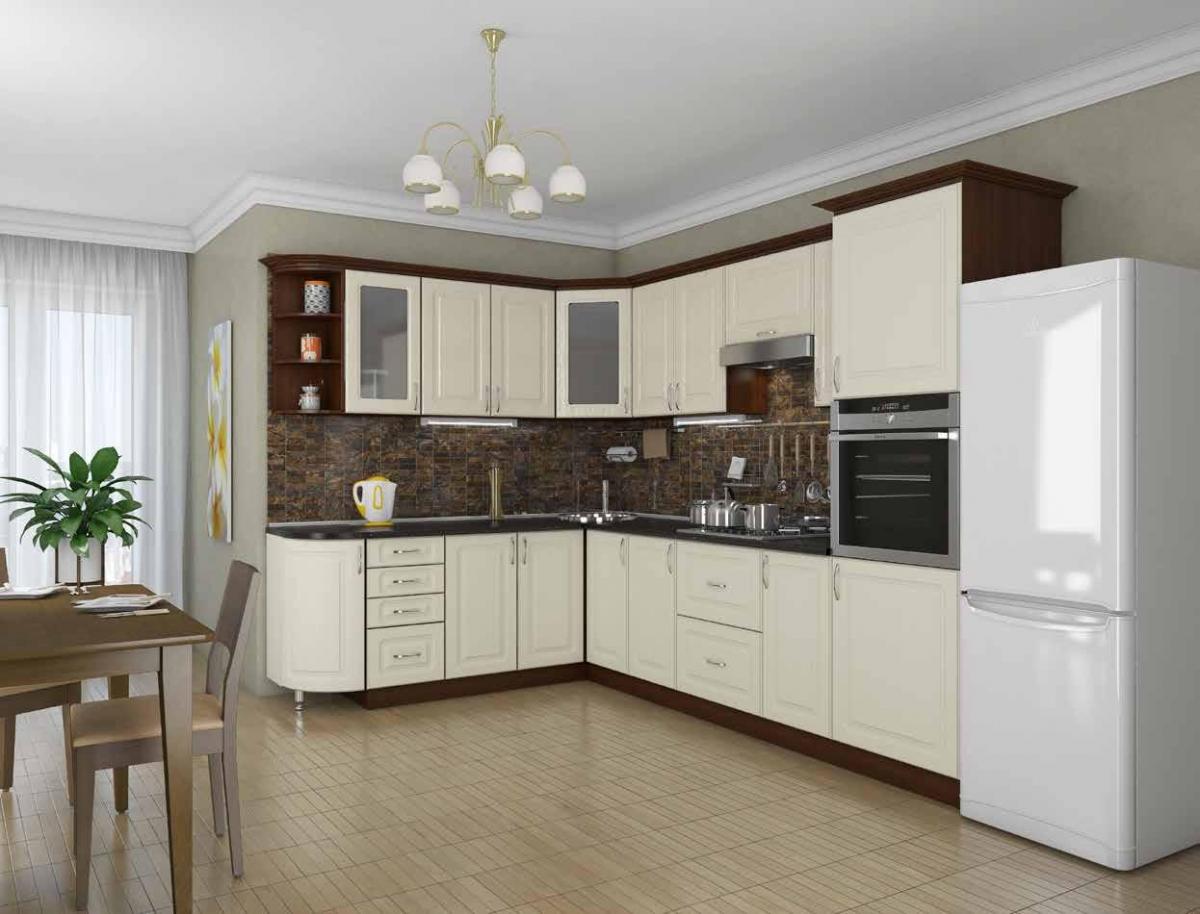 Кутові — більш ергономічний варіант комплектації. Ці моделі зручні у використанні, вміщують багато предметів, посуду та приладдя. Такі гарнітури виконані у вигляді букви Г, встановлюються уздовж двох суміжних стін. Ширина і співвідношення довжини сторін можуть варіюватися в залежності від моделі.