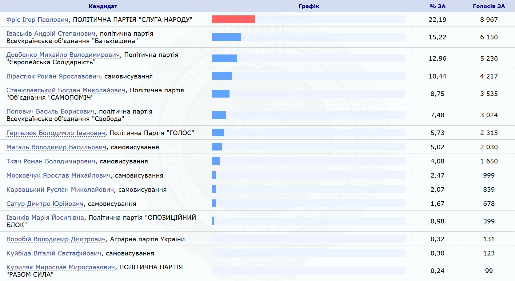 Вибори в Раду: на мажоритарних округах Прикарпаття відбулася зміна лідерів (інфографіка)
