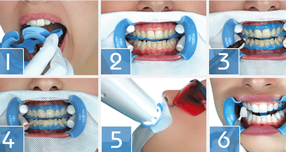 Процес відбілювання зубів системою BEYOND триває не більше 40 хвилин. Етапи наступні: