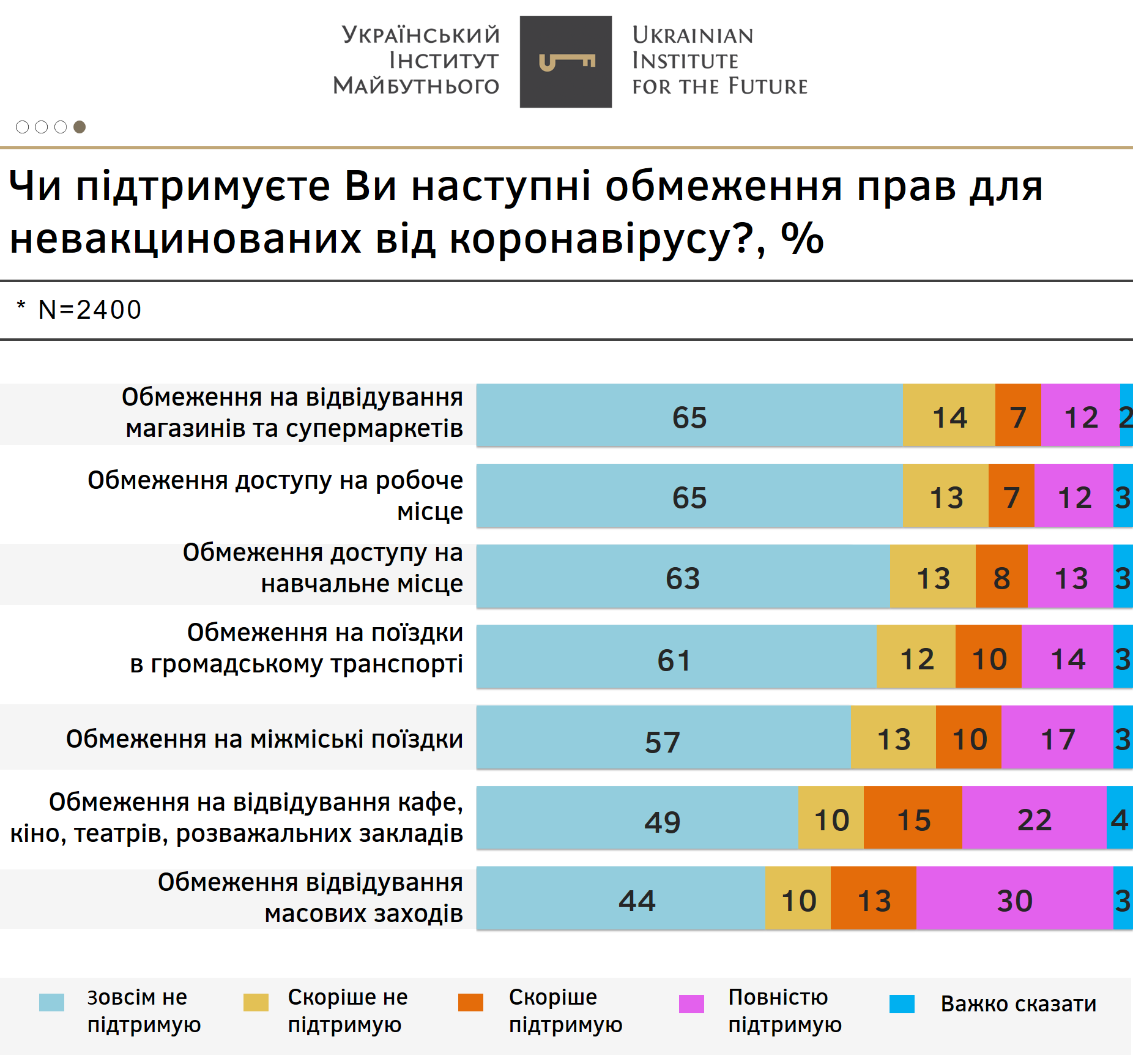 Абсолютна більшість громадян виступають проти обмеження прав для невакцинованих від коронавірусу.