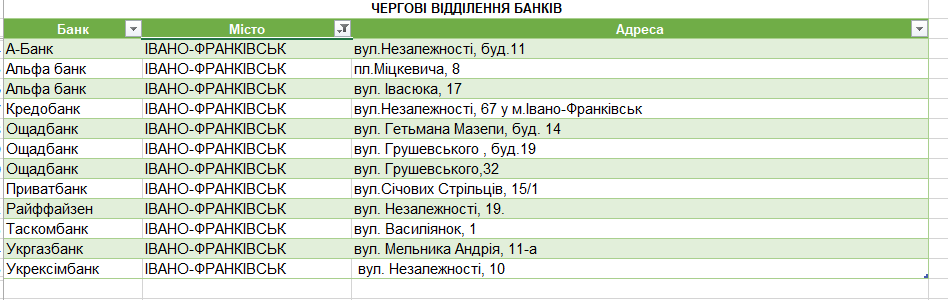 Що стосується Івано-Франківська, то 12 таких відділень банків працюватимуть.