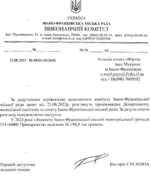 МФК "Прикарпаття" отримало з міського бюджету Івано-Франківська 16 мільйонів 194,9 тисячі гривень у 2023 році.