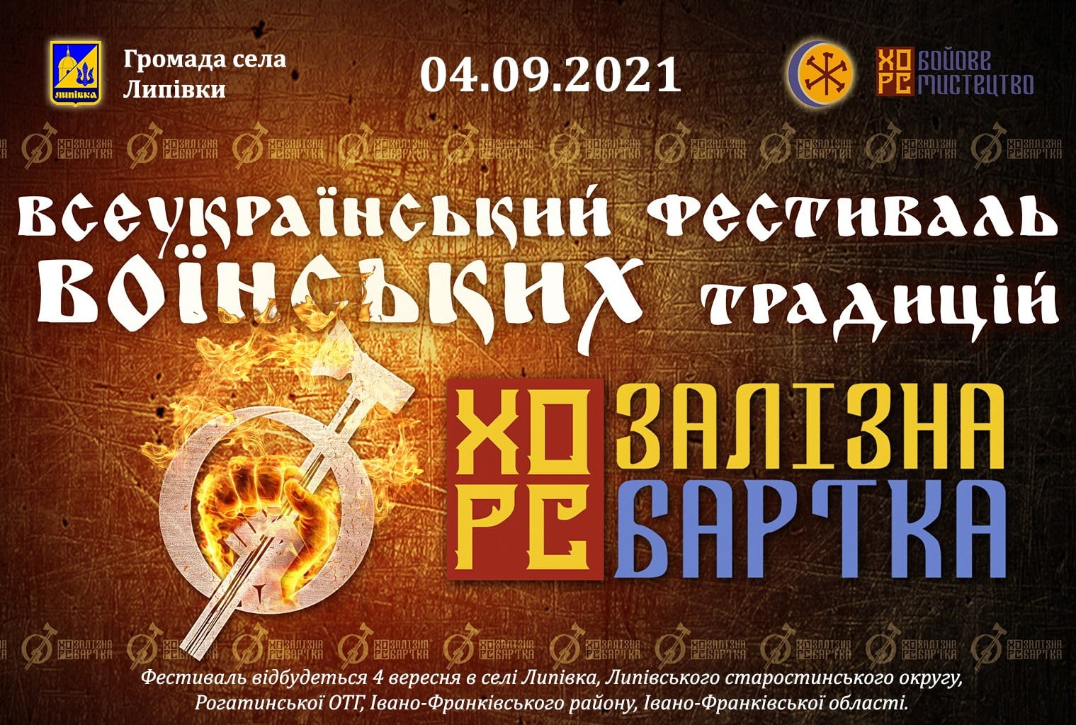 Третій всеукраїнський фестиваль воїнських традицій «Залізна бартка», проходитиме на базі будинку культури с. Липівка в суботу - 4 серпня.