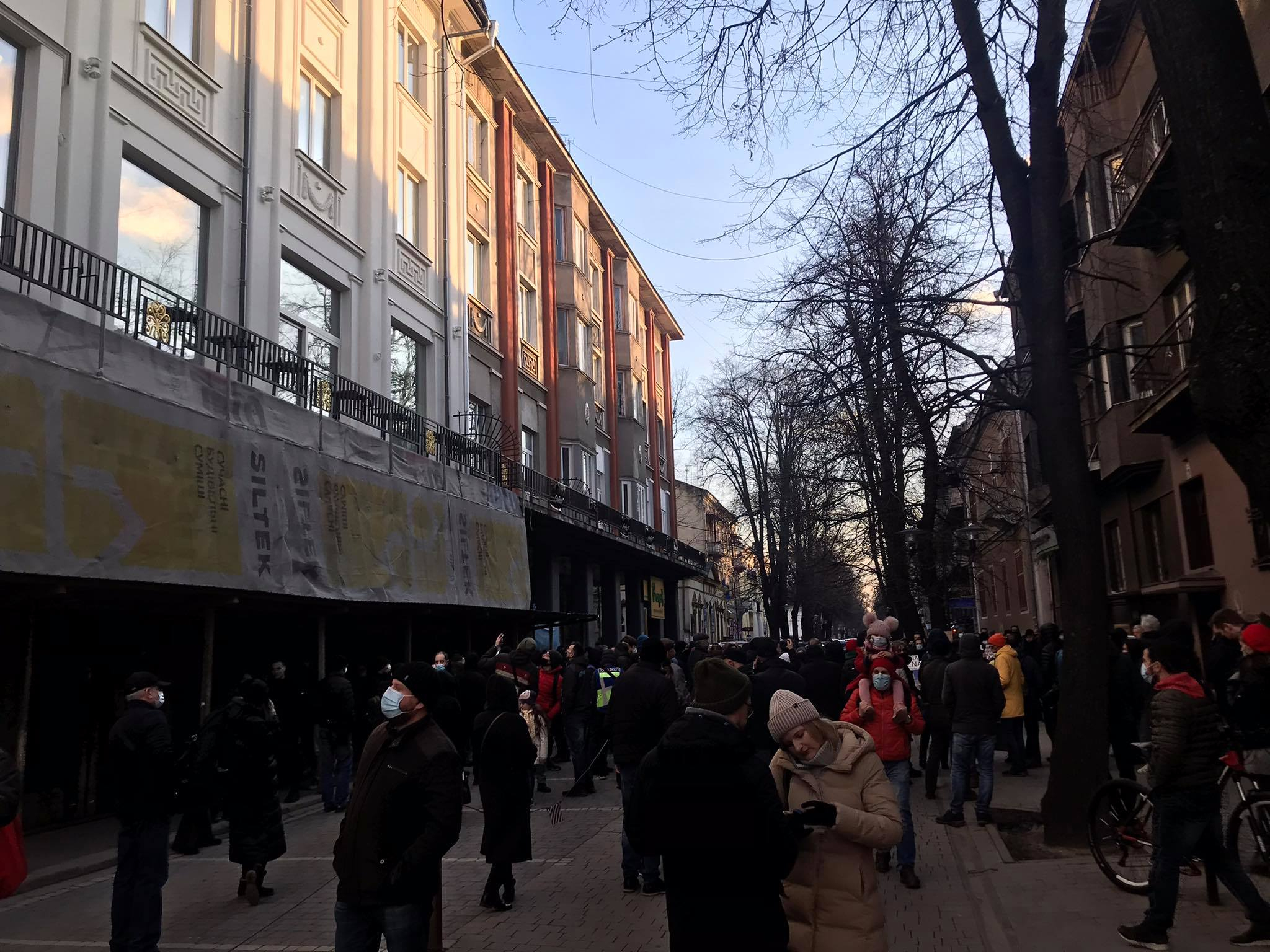 Десятки містян прийшли на вулицю Шевченка, щоб відстояти колонаду готелю «Дністер», інформує Фіртка.