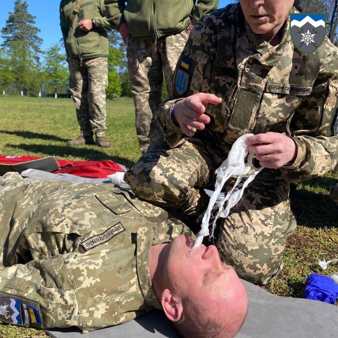 "Командир бригади, начальник штабу, офіцери, солдати уважно слухали ескулапів. Також кожен спробував застосувати почуте на практиці - правильно фіксувати джгут-турнікет на ногах та руках.Військові ставили питання-медики радо відповідали.