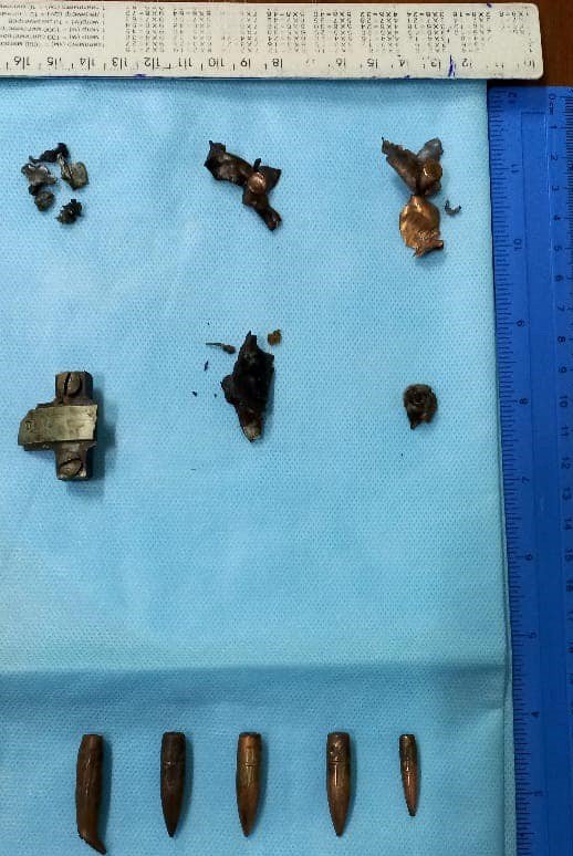 До слова, на фото зображені видалені кулі та осколки з черевної порожнини.