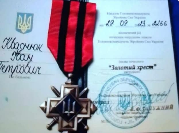 "Золотим хрестом" відзначають воїнів за особисту мужність і самовідданість виявлені у захисті державного суверенітету та територіальної цілісності України, за особливі бойові заслуги", - зазначено у дописі.