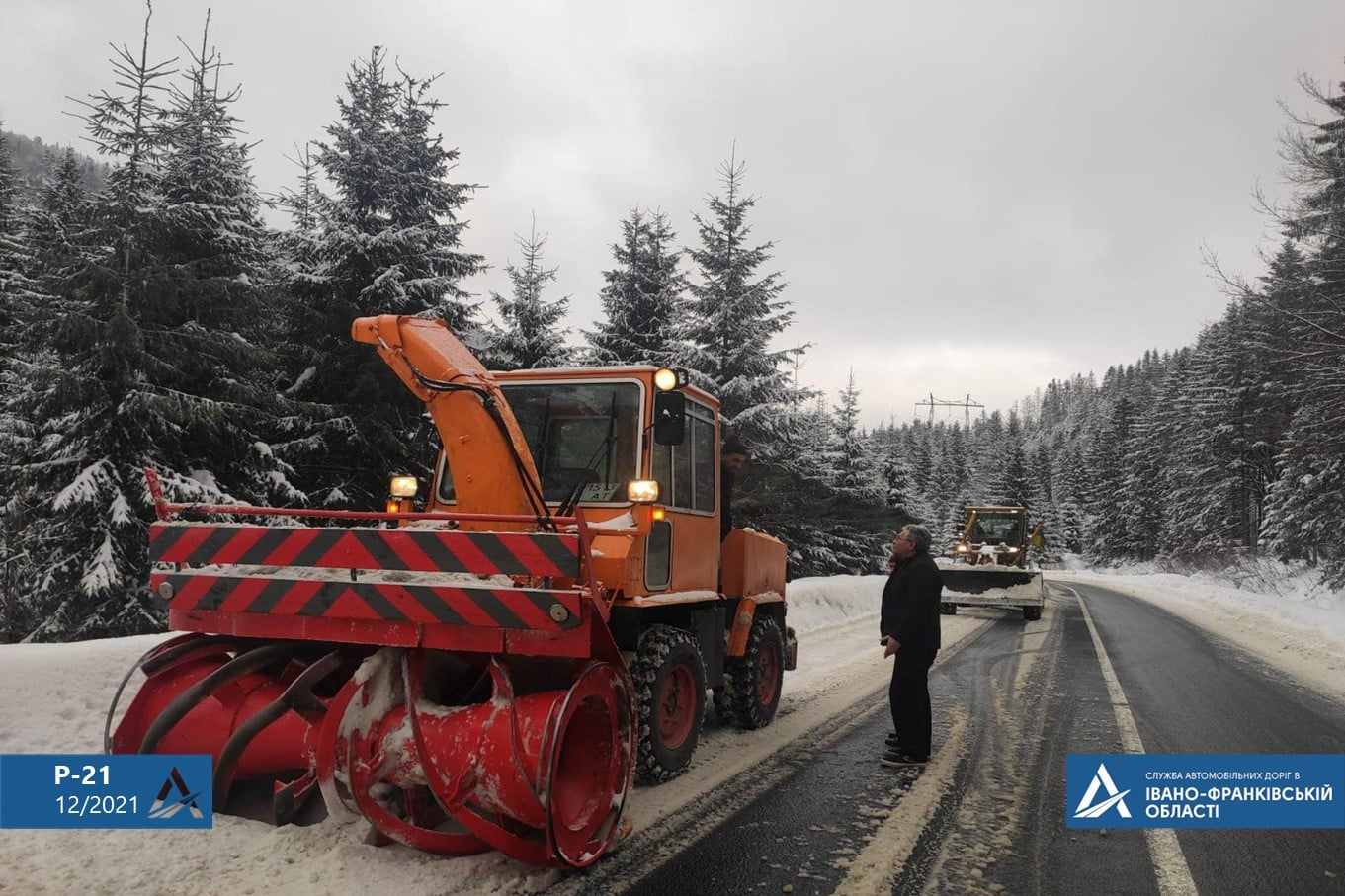 У високогір’ї Карпат снігове покриття сягає півтора метра. Для забезпечення проїзду застосовують снігоочисні самохідні роторні установки.