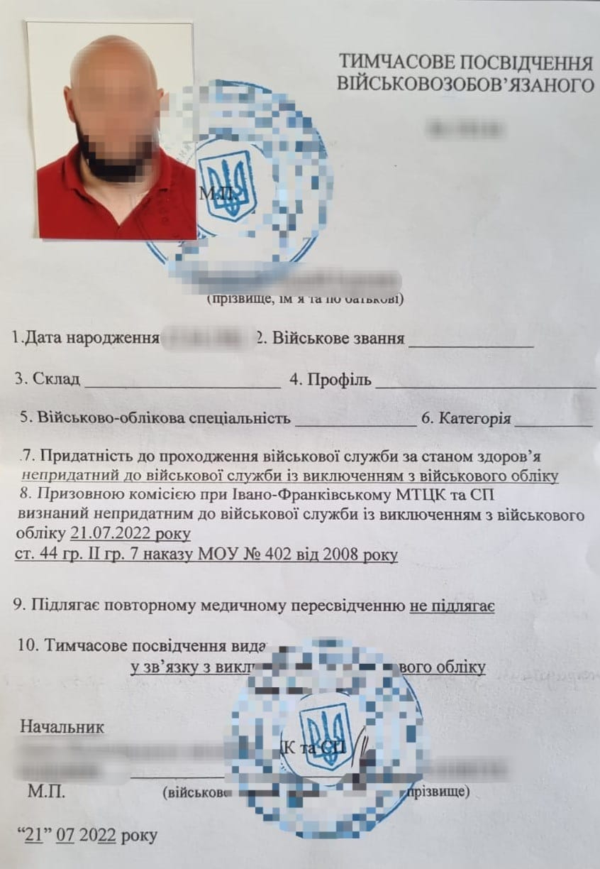 Так, у пункті пропуску «Ужгород» 42-річний житель Івано-Франківщини спробував виїхати за межі України, використовуючи довідку ВЛК про непридатність до військової служби та тимчасове посвідчення військовозобов’язаного.