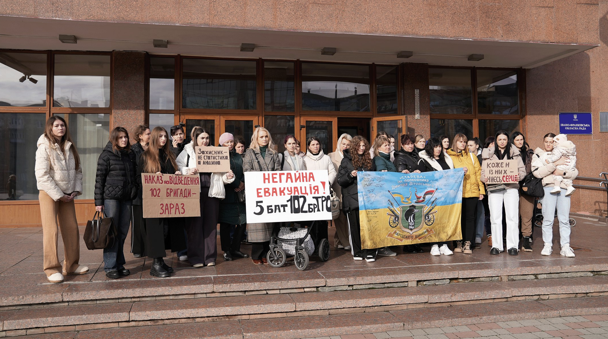 Родичі військовослужбовців 102 окремої бригади ТрО під час мирного пікету вимагали вивести бійців із критичних позицій на Запорізькому напрямку, евакуювати поранених, а також провести ротацію.
