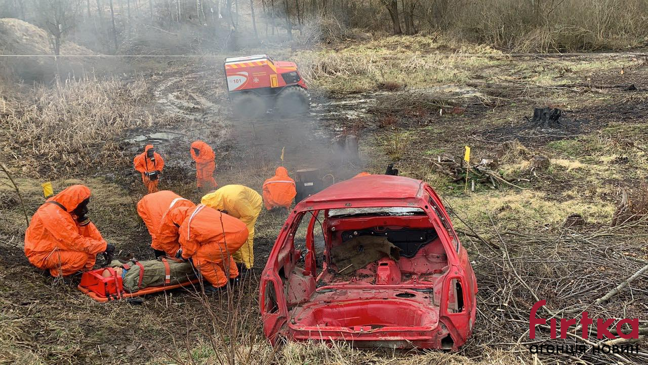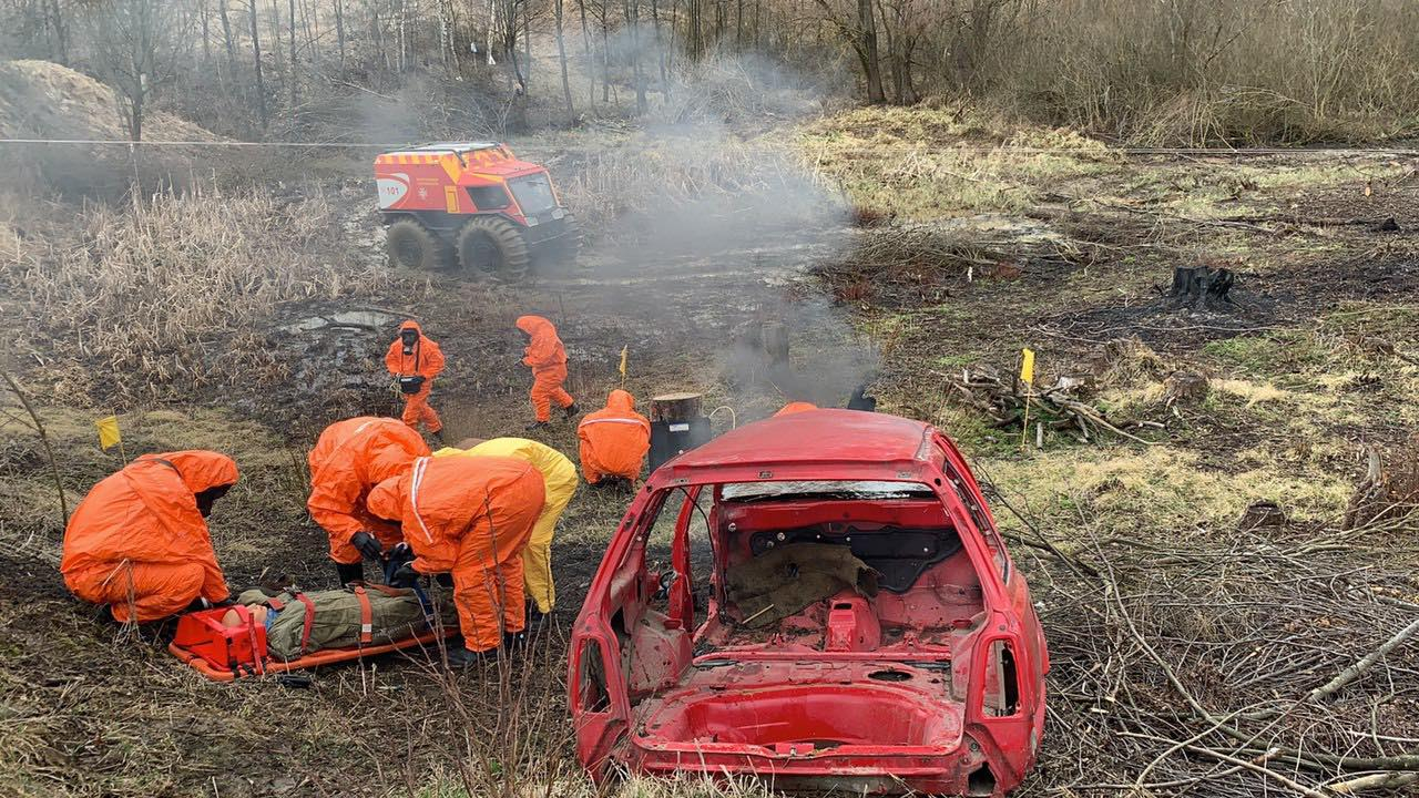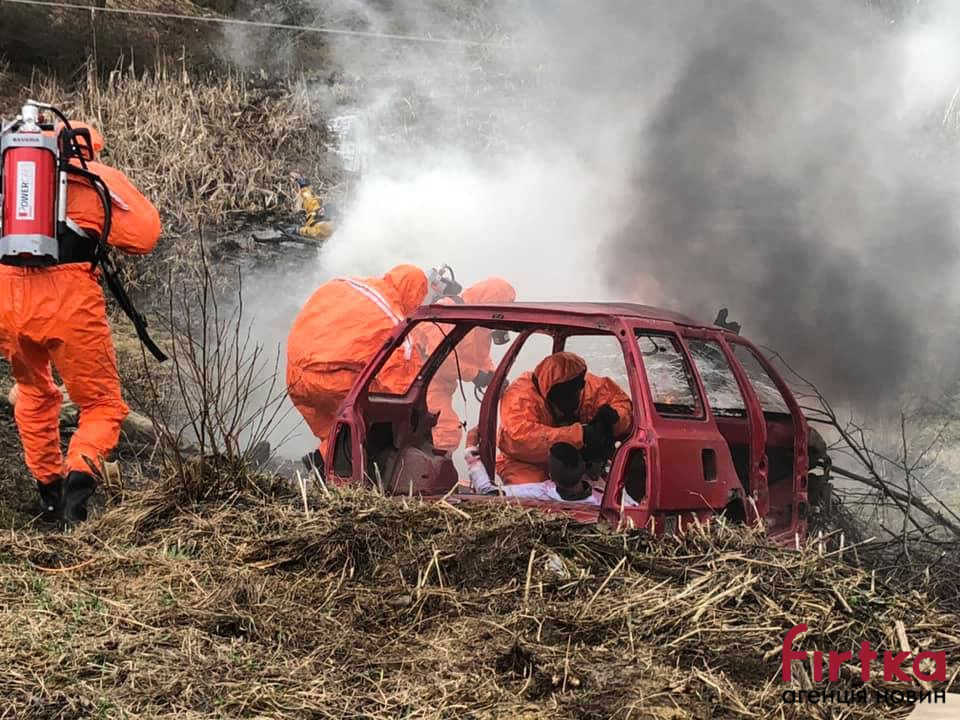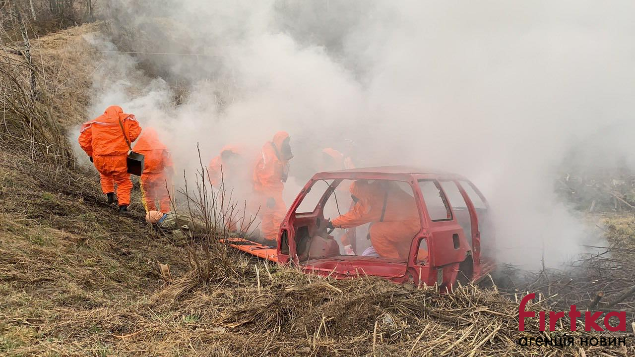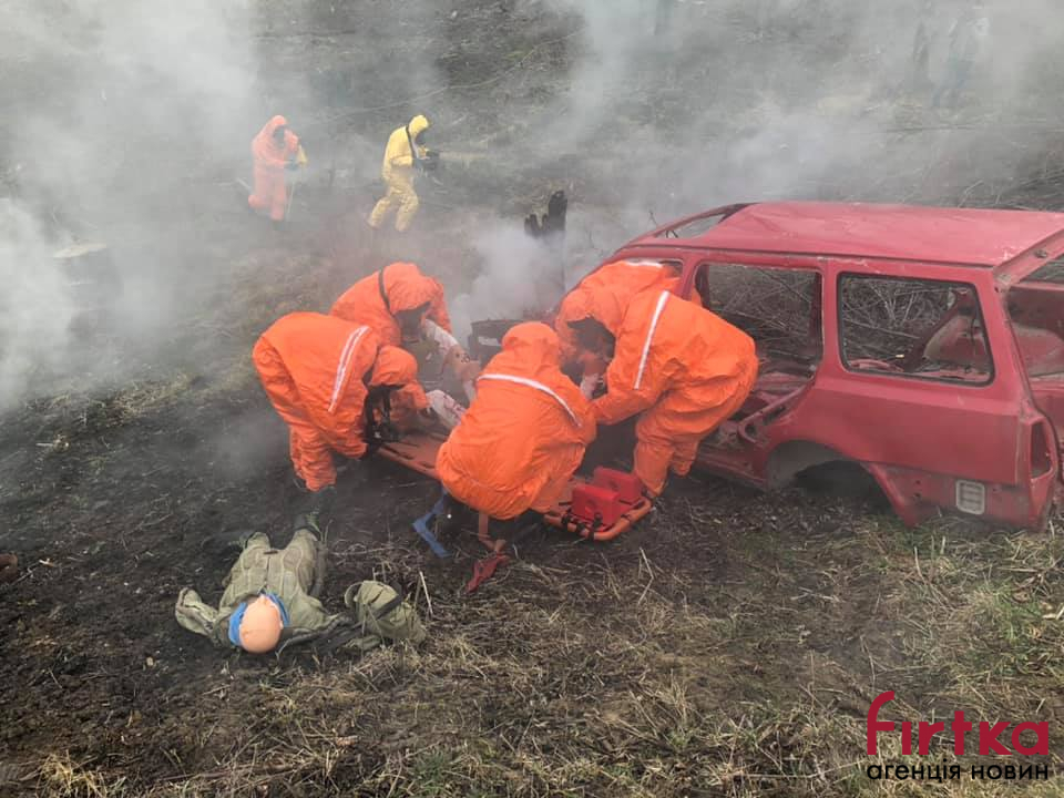 Згідно з тактичним задумом: при перевезенні ємностей з хімічною речовиною з метою виливу її у лісовому масиві, відбулось перекидання транспортного засобу, виникло його загоряння та витік небезпечної речовини. В результаті зазначеної події постраждали п’ятеро осіб, з них двоє загинуло, водія заблоковано елементами кузова, двоє осіб кинулися навтьоки, потрапили в трясовину та потребують допомоги.