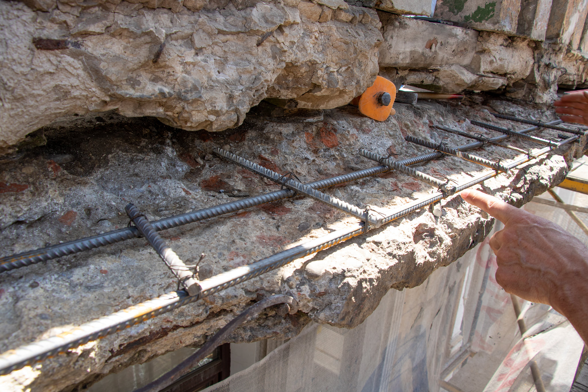«Коли розчистили тіло бетону, яким залита плита балкону, то побачили металеві рейки – його несучі елементи. Вони в доволі хорошому стані та зберегли свій функціонал. А от саме тіло бетону заповнене подрібненою цеглою. Її наявність і спровокувала таке інтенсивне руйнування балконної плити: частини цегли втягують вологу під час інтенсивних опадів, зимових циклів «замороження – розмороження» та осипаються разом з бетоном».