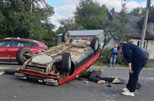 У аварії зіштовхнулися два легкових авто. Внаслідок аварії, одна автівка перекинулася, а інша - з'їхала з дороги.