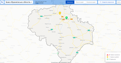 3. Модуль звернення — це функція мапи, за допомогою якого можна надсилати до Укравтодору інформацію про існуючі проблеми, які перешкоджають комфортному проїзду (незадовільний стан доріг, перешкоди руху, події на дорогах тощо).