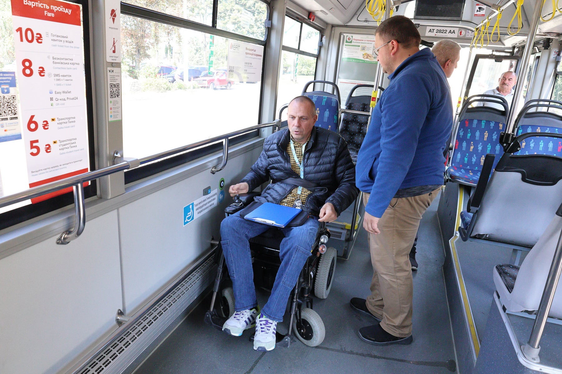 Заступник директора КП наголосив, що усі автобуси, які пристосовані для людей із інвалідністю, обладнані системою кнілінгу нахилу кузова. Це означає, що кузов нахиляється до зупинки, щоб людині з інвалідністю або мамі з дитячим візком було легше потрапити у транспортний засіб.