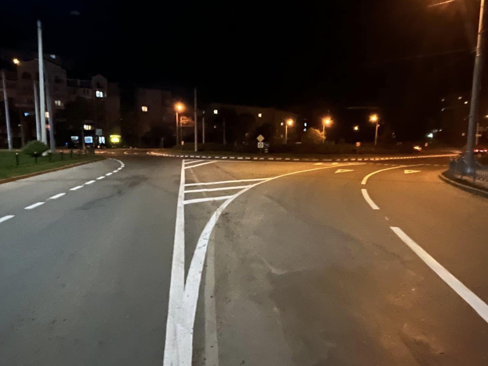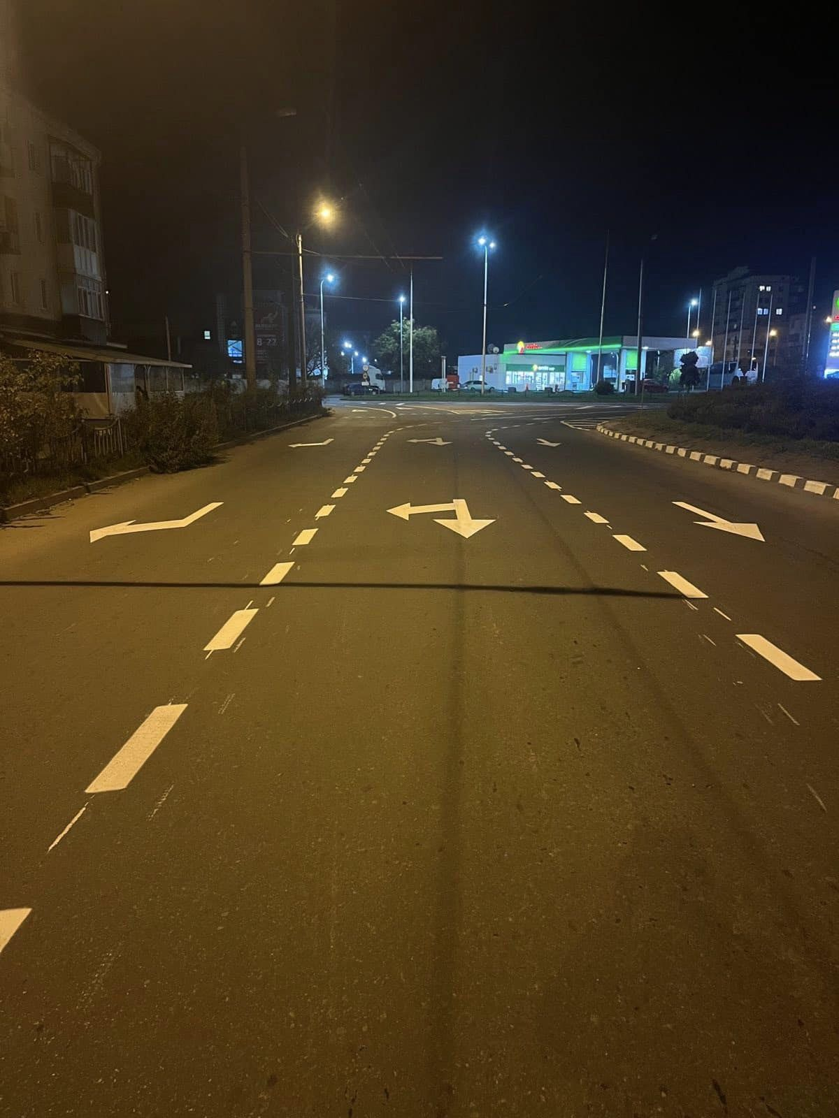 Цієї ночі тут нанесли розмітку згідно з новою схемою організації дорожнього руху. Водіїв просять бути уважними.