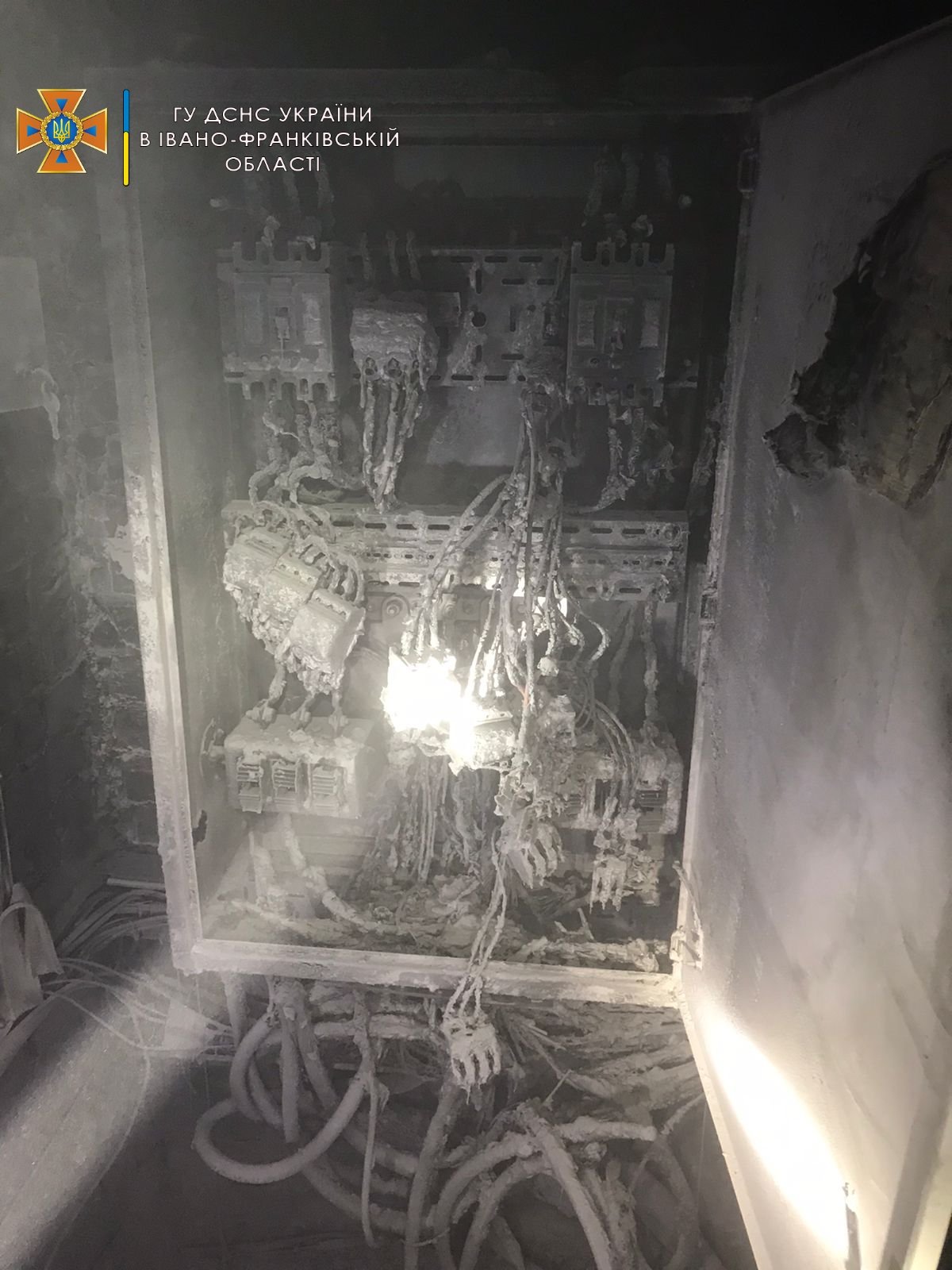 По прибуттю до місця події, розвідка встановила, що виникла пожежа в приміщенні електрощитової на першому поверсі дев’ятиповерхового житлового будинку, площа пожежі складала 2 м.кв.