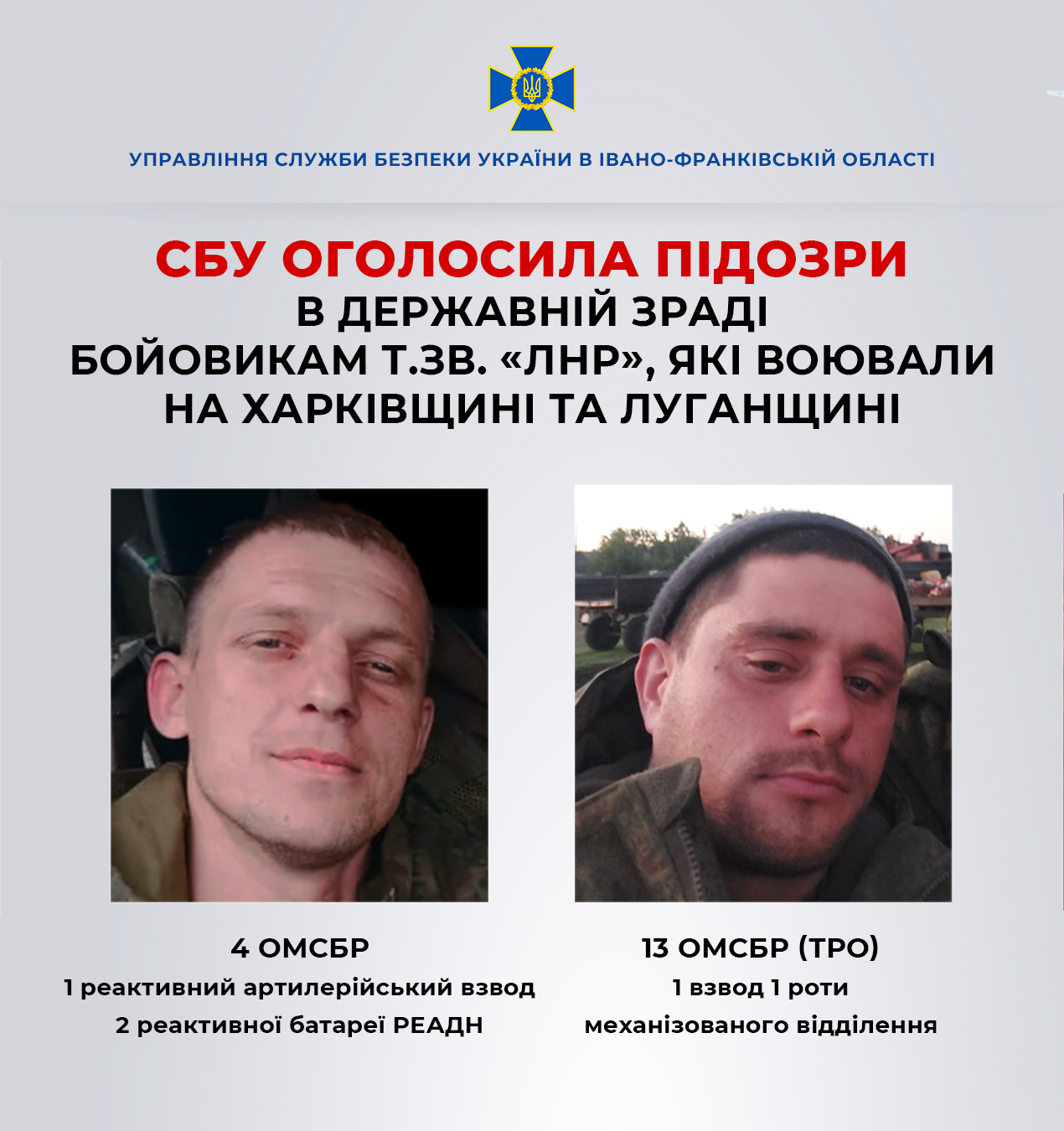 Слідчі СБУ в Івано-Франківську повідомили про підозру ще двом учасникам збройних формувань т.зв. «ЛНР».
