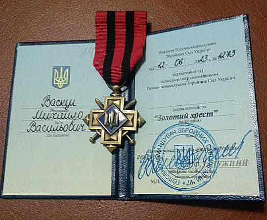 Васкул Михайло наказом Головнокомандувача Збройних Сил України відзначений нагрудним знаком "Золотий Хрест".