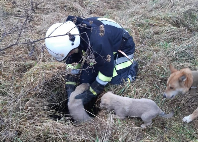 Про пригоду рятувальників повідомила жінка, котра почула сильний гавкіт дорослої собаки біля ями, поблизу села. Підійшовши ближче, жінка побачила, що на глибині близько двох метрів, у ямі знаходяться маленькі собачки.