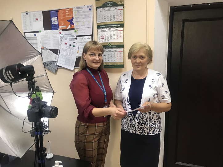 Заступниця керівника відділу у справах іноземців, осіб без громадянства та запобігання нелегальній міграції УДМС в Івано-Франківській області Галина Савчук вручила колишній громадянці Російської Федерації Галині Гаріджук довідку про звернення за визнанням її особою без громадянства.