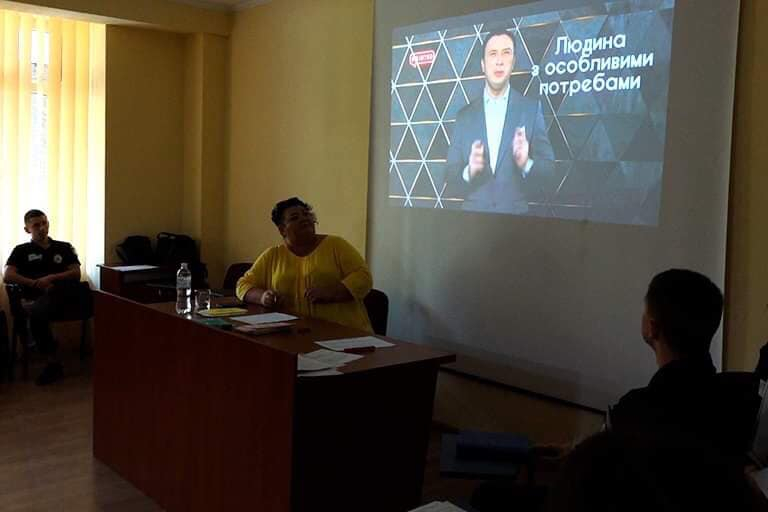 Навчання стало можливим завдяки співпраці з громадською організацією «Перекладачів жестової мови та людей з інвалідністю «Міст»», її директоркою Наталею Московець, яка проводить тренінг для поліцейських.