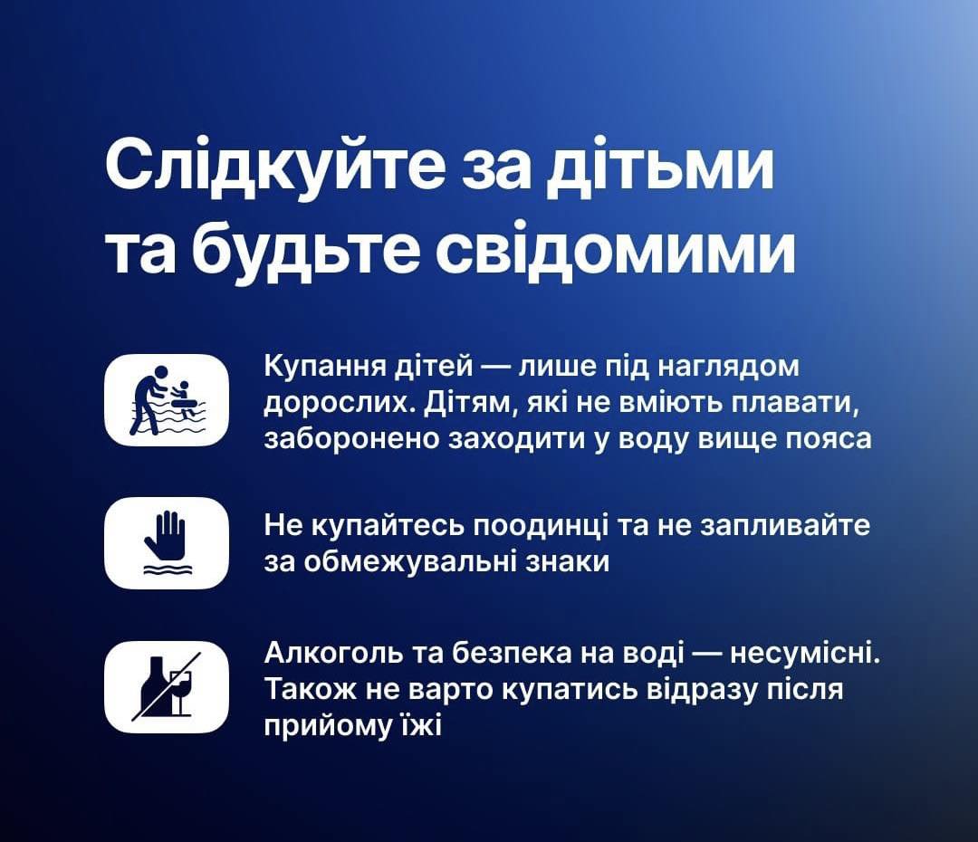 "Перебуваючи біля водойм будьте вкрай обережними і особливо слідкуйте за дітьми.