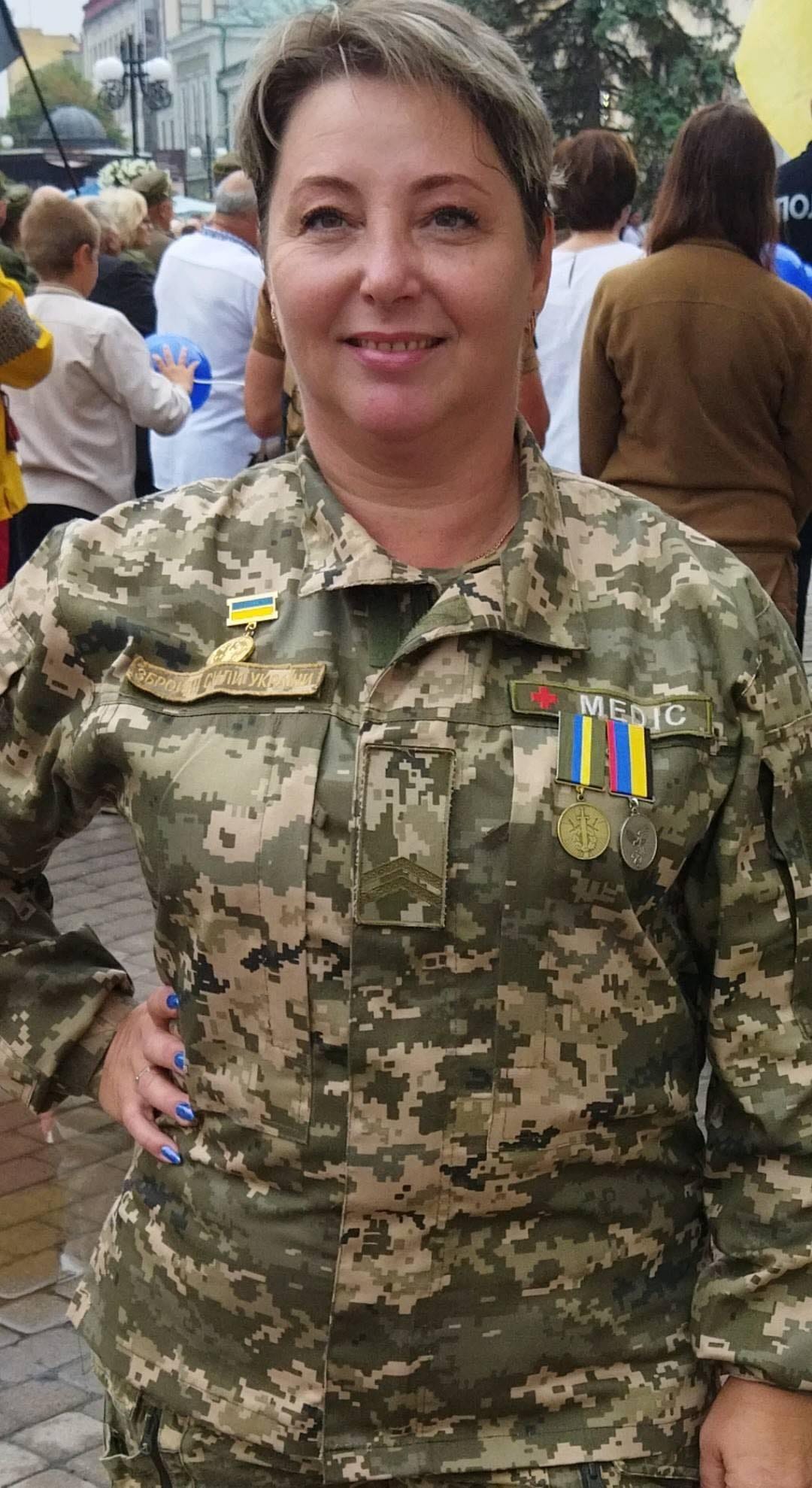Проживала в м. Івано-Франківськ. Раніше була бойовим медиком 10 гірсько-штурмової, врятувала багато наших хлопців. Отримала інвалідність в АТО. Її чоловік продовжує боротьбу на фронті.