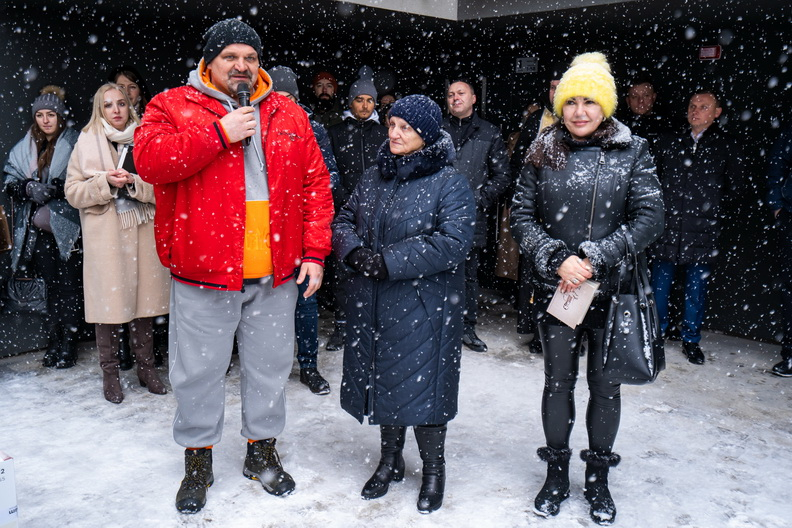 ЖК «Парковий» знаходиться на вулиці Романа Вірастюка, 1. В честь цього ми запросили на вручення його брата - Василя Вірастюка, дружину - Ірину та матір, які мали вступне слово, а дружина зачитала вірш, який написав Роман ще за життя.