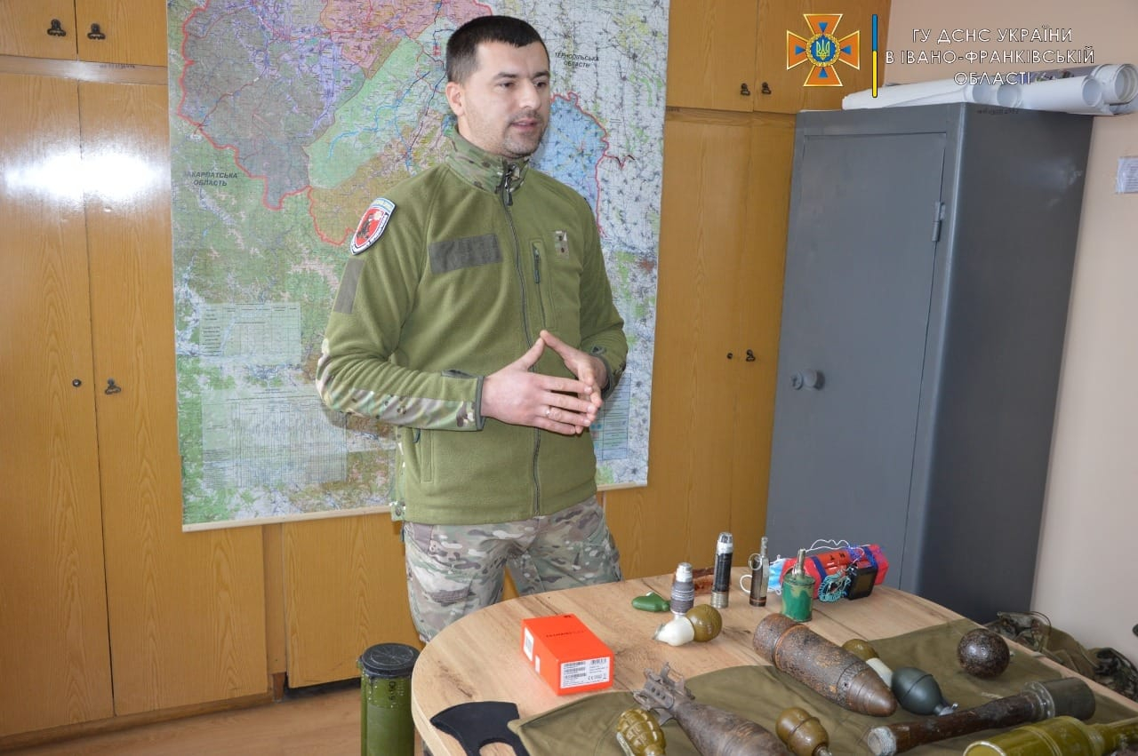 Піротехніки продемонстрували муляжі вибухонебезпечних предметів, наголосили якими мають бути першочергові дії при виявленні таких предметів, куди звертатись за допомогою та що робити, щоб не сталось біди.