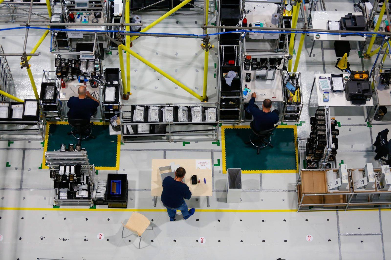 Хоча навряд чи всі пристрої будуть використані негайно, зусилля мають вирішальне значення для підвищення стійкості країни до пандемії та можливих майбутніх спалахів, сказав Елсі на заводі в Броутоні. Стів Морріс, 33 роки, працює над складанням поглинача вентилятора.