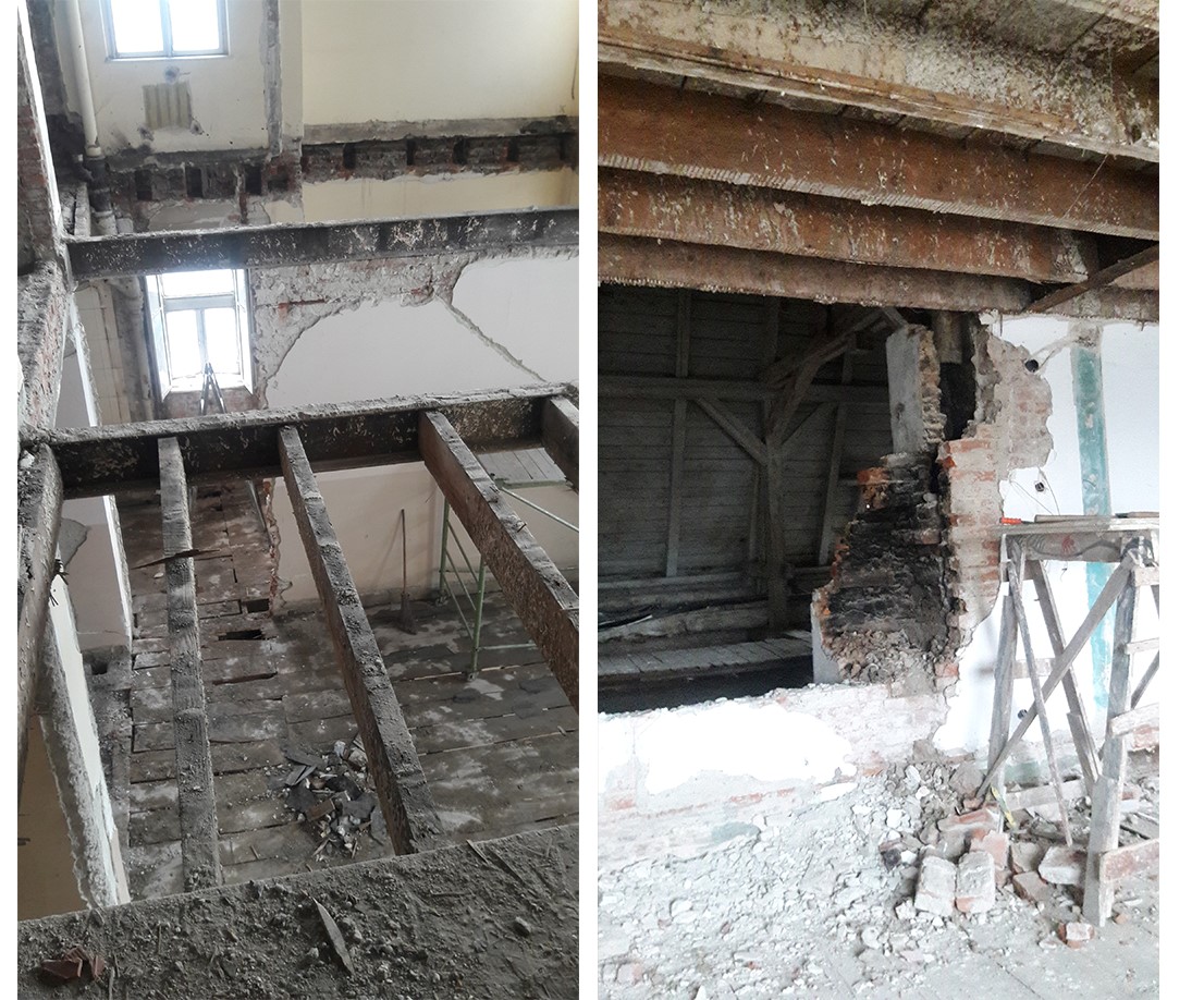 У процесі обстежень технічного стану будівлі нами, як новими власниками, було встановлено, що несучі дерев’яні перекриття споруди знаходяться в аварійно-небезпечному стані, втратили здатність утримувати конструкцію в цілому, що загрожувало повному руйнуванню готелю та прилеглих будинків.