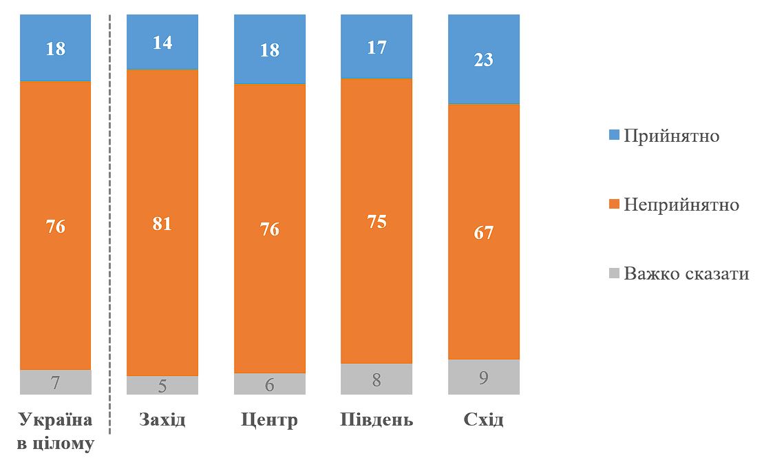 При цьому для лише 18% прийнятно буде відмовитися від вступу до НАТО заради встановлення миру, а для 76% така ціна є неприйнятною. У регіональному вимірі також консенсусний погляд: від 67% на Сході до 81% на Заході вважають таку поступку неприйнятною для встановлення миру.