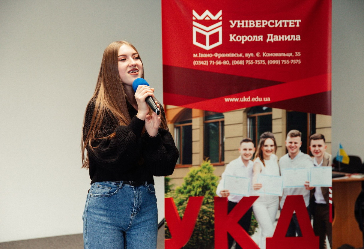 «Коли отримала знижку, то навіть не розглядала інших варіантів і не подавала документи в інші ЗВО, - розповідає Софія Романишин. - Про Університет Короля Данила багато хороших відгуків, тому для мене він свого часу став своєрідною мрією, яку мені вдалось втілити. Зустрічі з успішними людьми, виступи зірок шоу-бізнесу, успішні університетські музичні проєкти, викладачі-практики,  відповідна матеріально-технічна база - однозначні переваги закладу».
