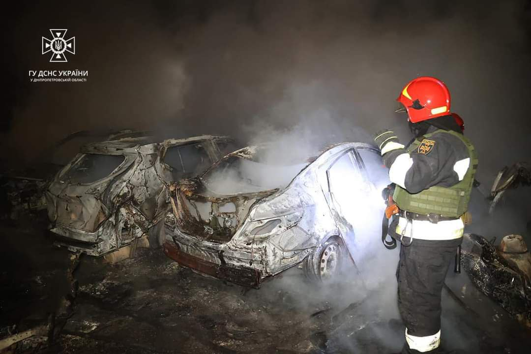 Внаслідок атаки ворожими БПЛА у Дніпрі пошкоджено житлову будівлю та знищені легкові автомобілі.