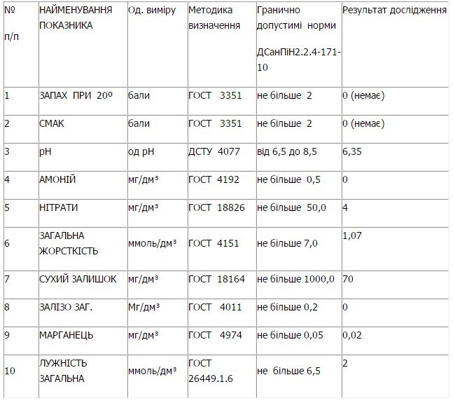 В інших джерелах, що перевірялися, показники не перевищують граничні допустимі норми, проте в деяких вода далеко не найкращої якості.