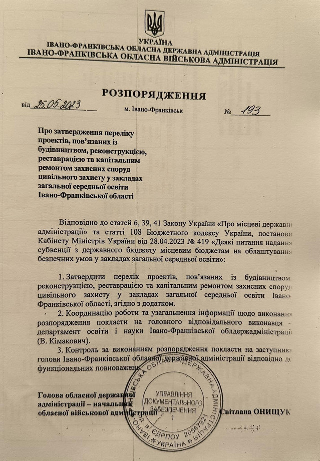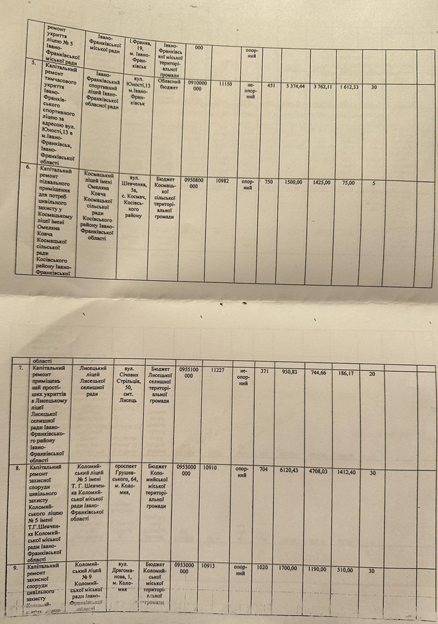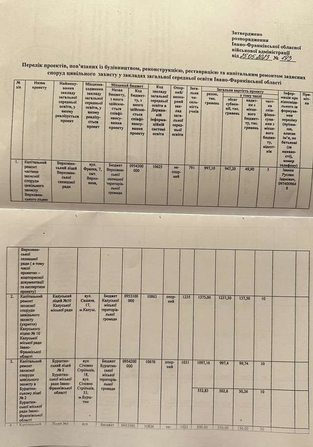 До переліку проектів, повʼязаних із будівництвом, реконструкцією, реставрацією та капітальним ремонтом захисних споруд цивільного захисту у закладах загальної середньої освіти Івано-Франківської області включено 11 навчальних закладів.