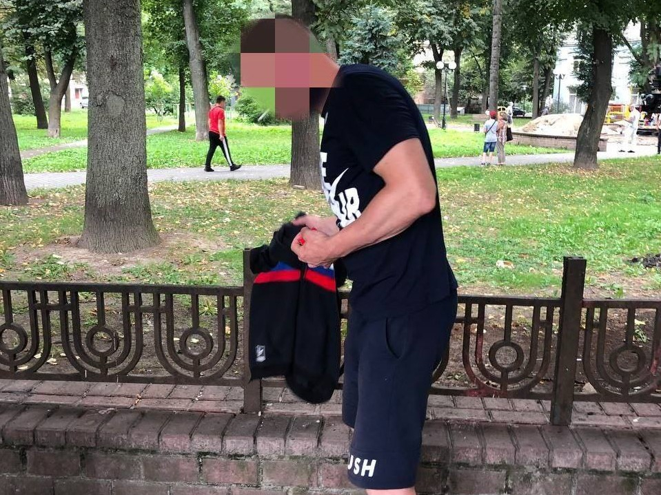 Вчора, 18 серпня, у Привокзальному сквері затримали п'яного чоловіка з російським прапором.