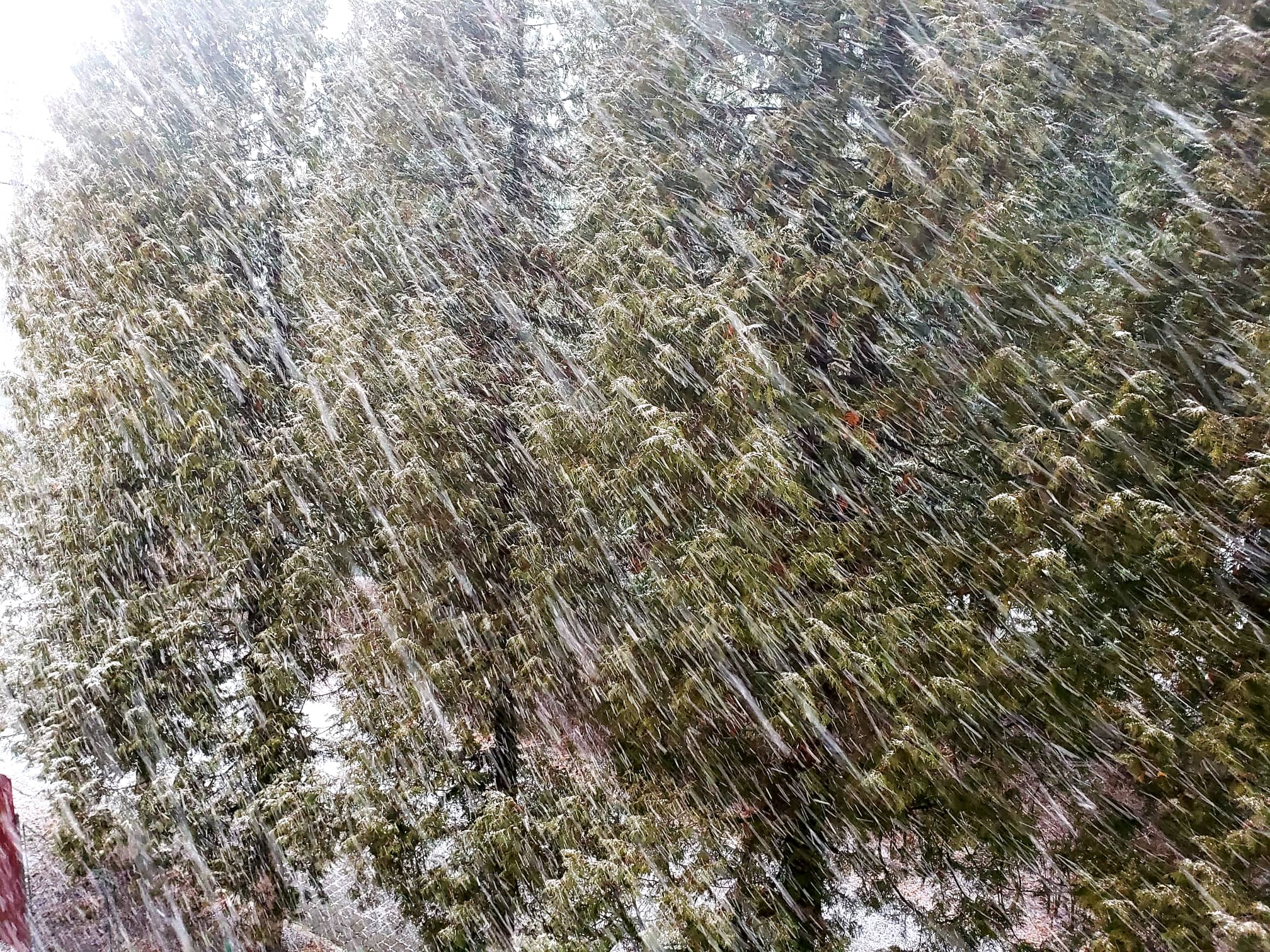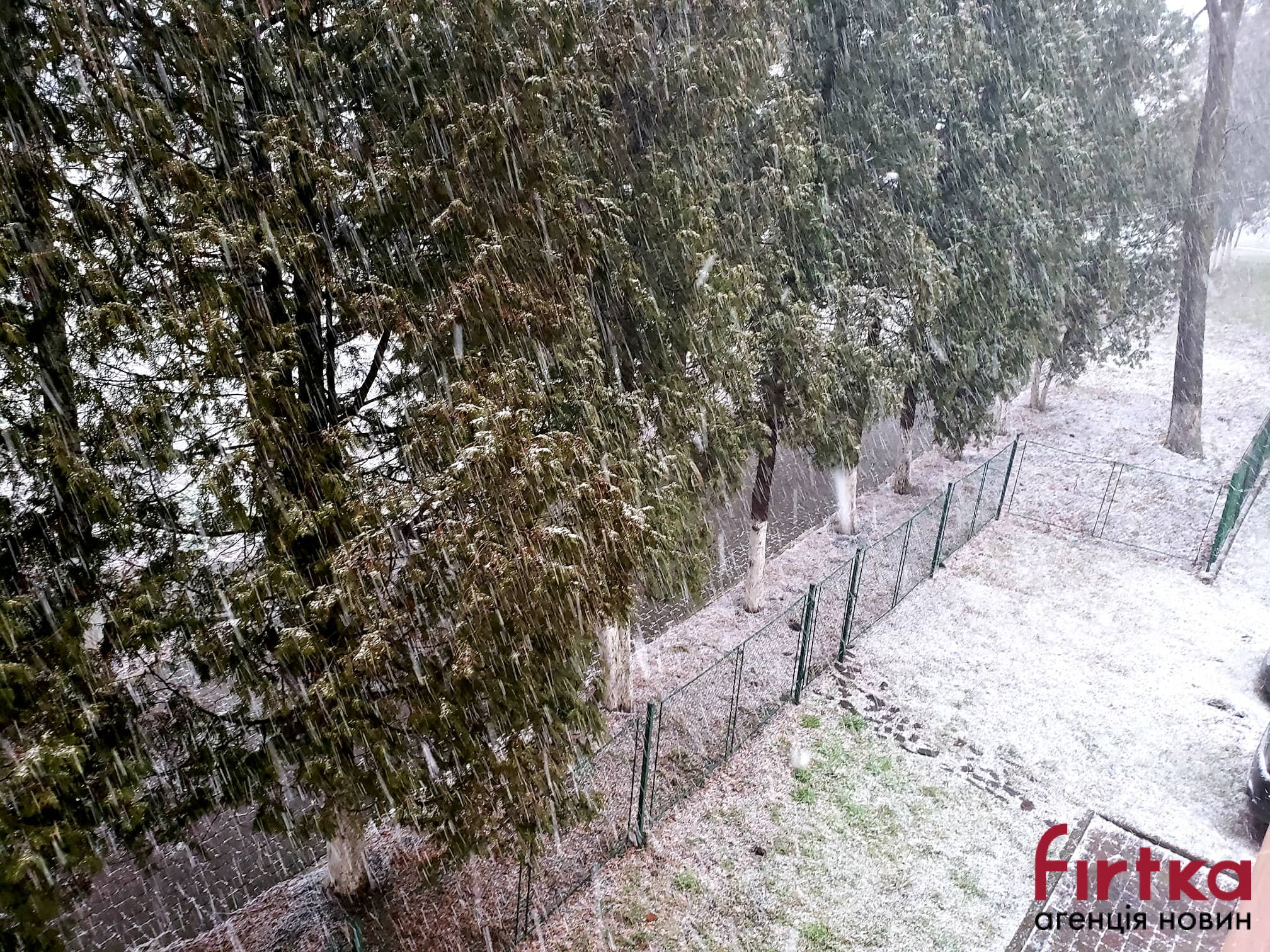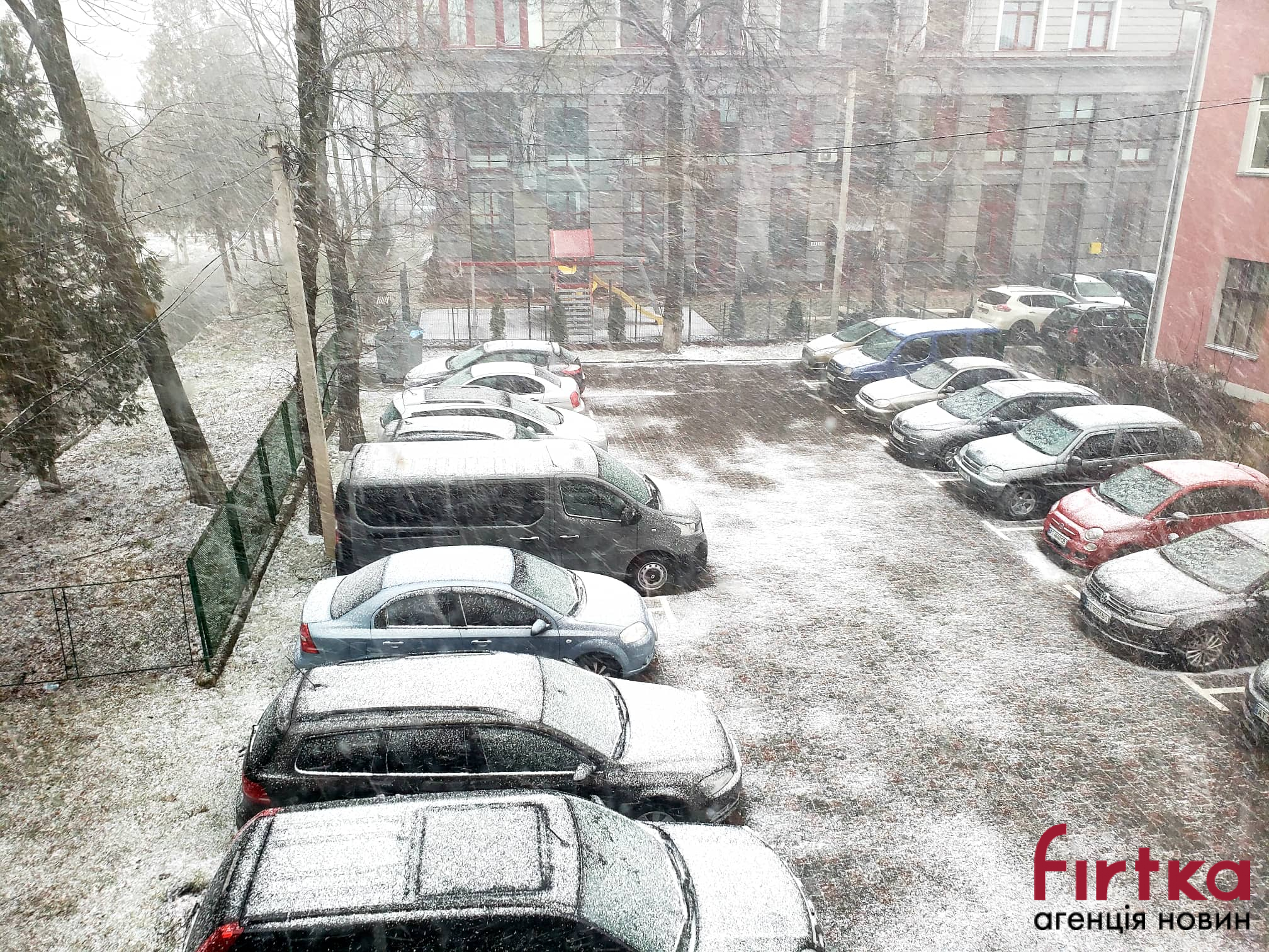 Менше ніж за 10 хвилин на тротуарах, газонах та автомобілях сформувався сантиметровий сніговий покрив.