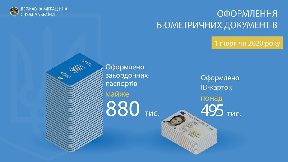 За останні пів року роботи міграційної служби 880 тисяч українців отримали закордонні паспорти та 495 тисяч - ID-картки.