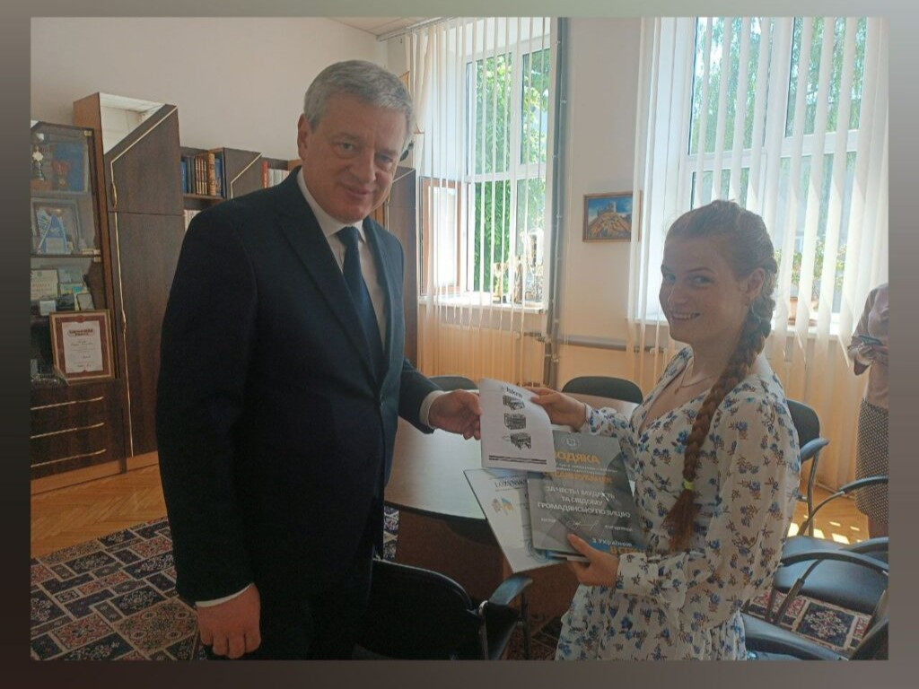 Ректор нагородив її Подякою за честь і мудрість та свідому громадянську позицію. Також Оксані Рубаняк вручили сертифікат про призначення їй грошової стипендії Фундації Лозинських (США).