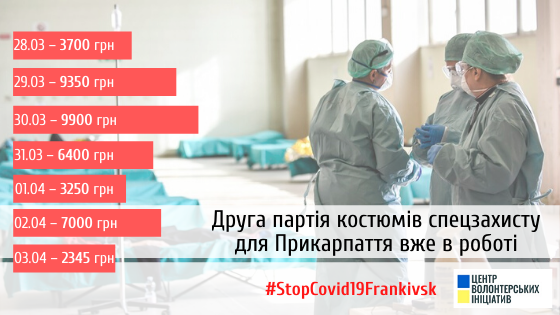 З 28 березня, за останні 7 днів волонтерам вдалося зібрати 41 945 грн на нову партію засобів індивідуального захисту для медичних працівників та поліцейських Прикарпаття.