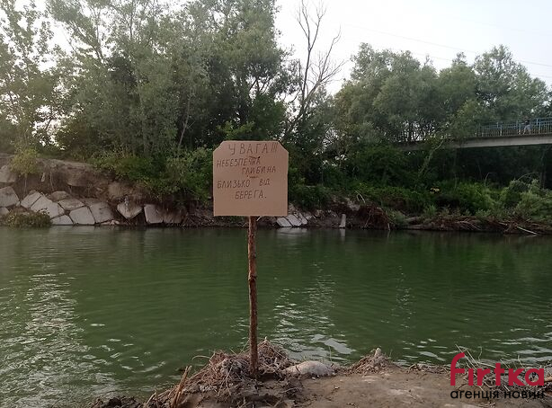 Також інформаційну табличку розмістили безпосередньо на пляжі. Однак застороги франківців не лякають – дорослі та діти продовжують плавати в безпосередній близькості від небезпечного місця.