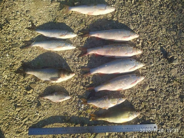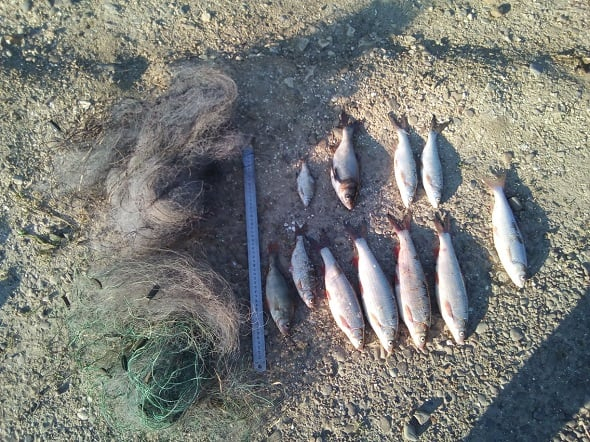 В особи в поліетиленовому пакеті без води, разом із сіткоснастевими знаряддями лову, у снулому стані виявлена така риба: підуст звичайний – 4 екз., білизна (жерех) – 2 екз., товстолобик строкатий – 1 екз., лящ – 1 екз., плітка звичайна - 1 екз. (всього 10 екз. загальною вагою 2,1 кг), а також 1 екз. занесеного в Червону книгу України вирезуба причорноморського вагою 0,3 кг.