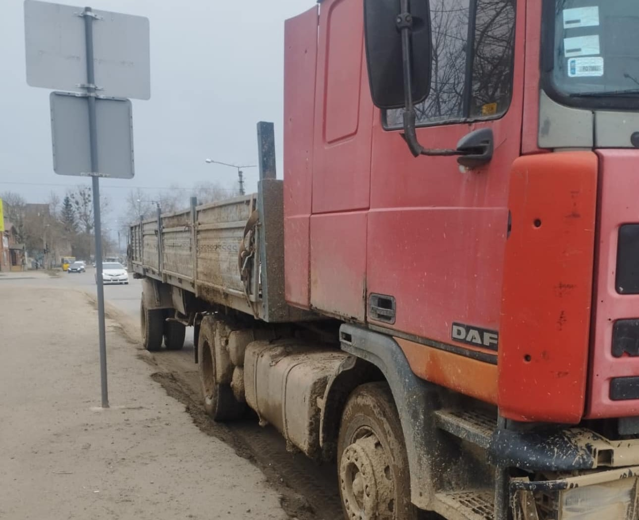 Так, днями патрульні звернули увагу на автомобіль DAF, який рухався проїзною частиною дороги та забруднював дорожнє покриття.